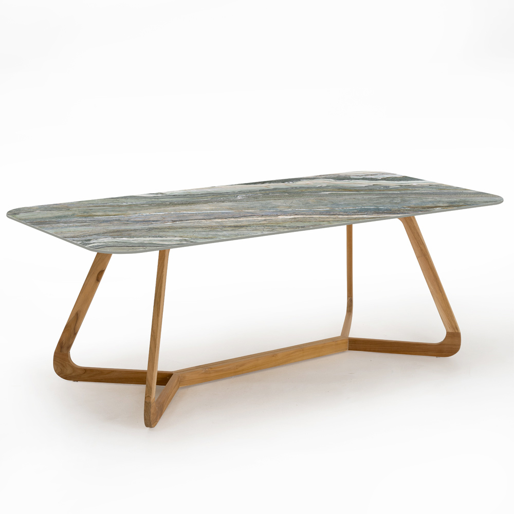 Mesa de exterior con base de madera y tapa de cerámica Royal Peacock - Infinity