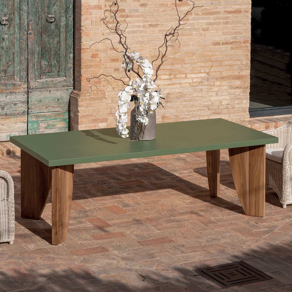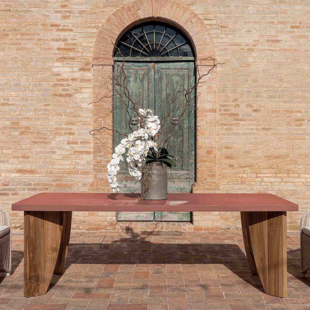 Mesa de exterior en microcemento Okumè y acabado en teca Made in Italy - Pencil