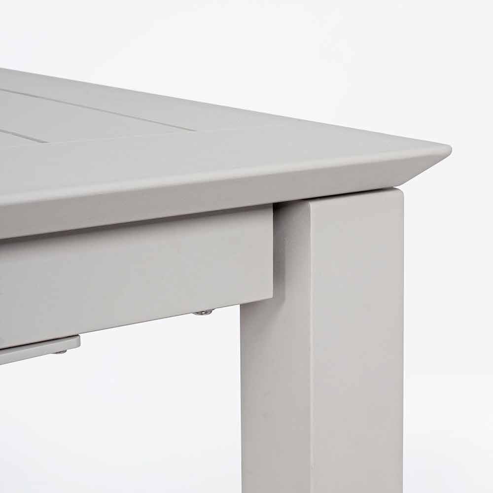 Mesa exterior extensible para 10 personas, diseño moderno en aluminio.