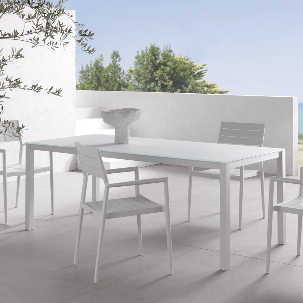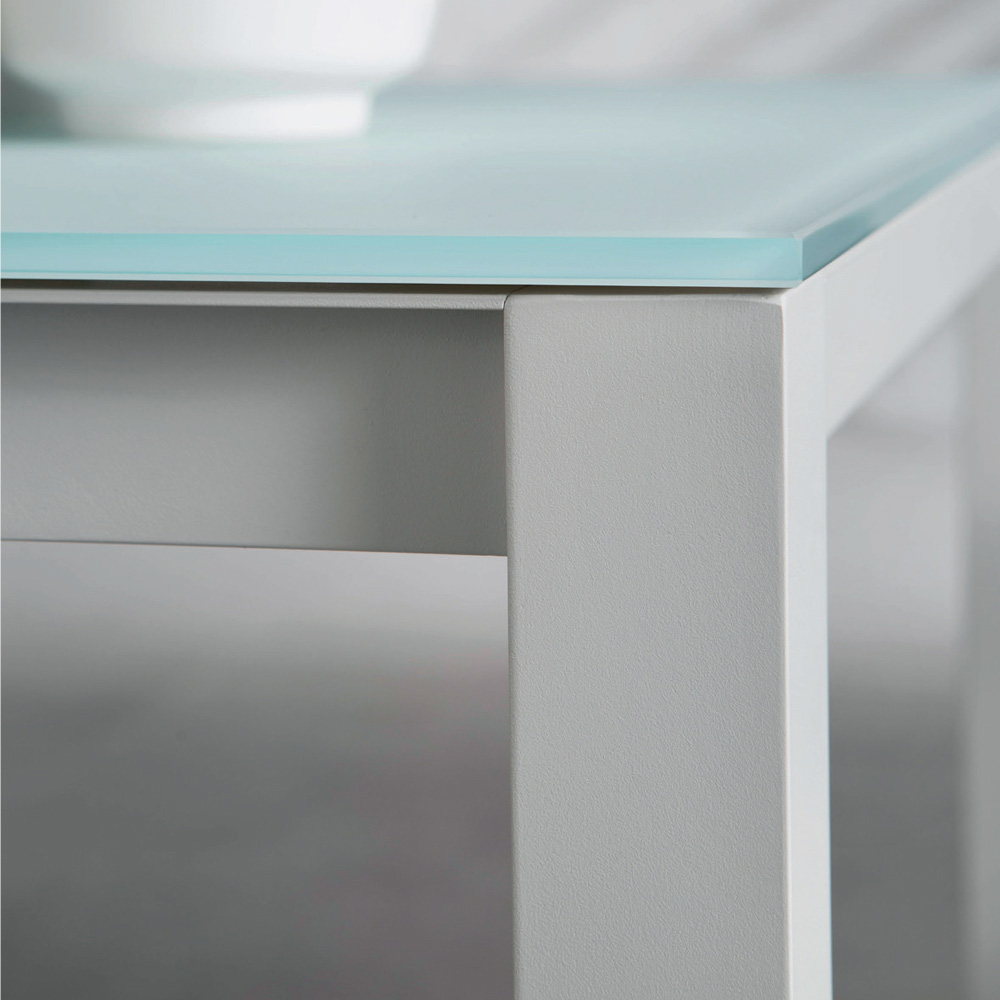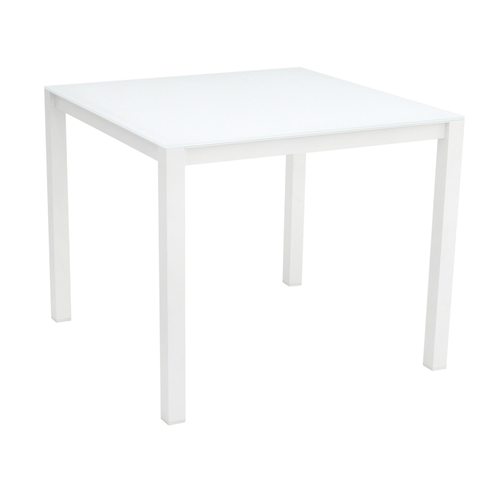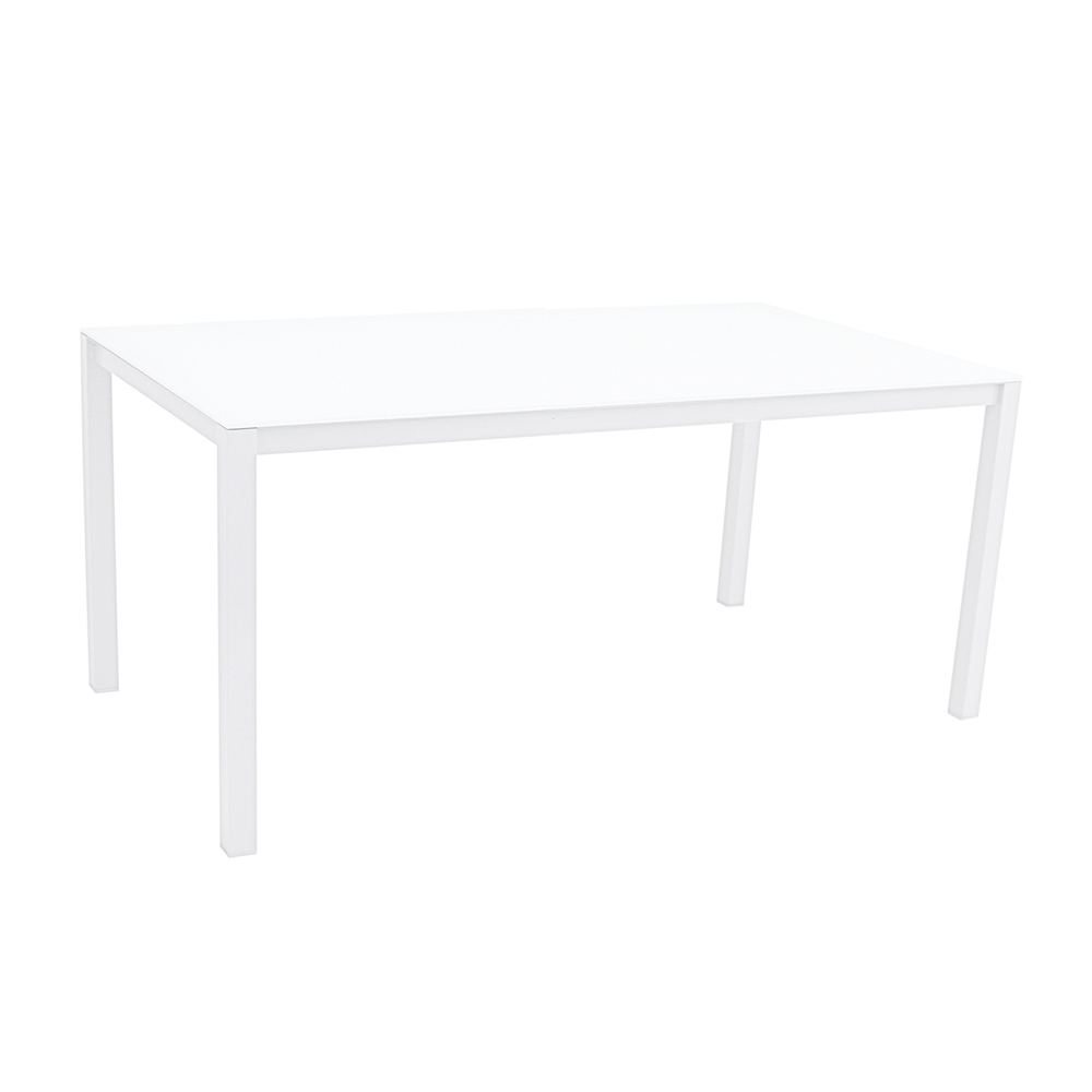 Mesa de jardín con estructura de aluminio pintado con polvos epoxi y tapa trasera de cristal pintado