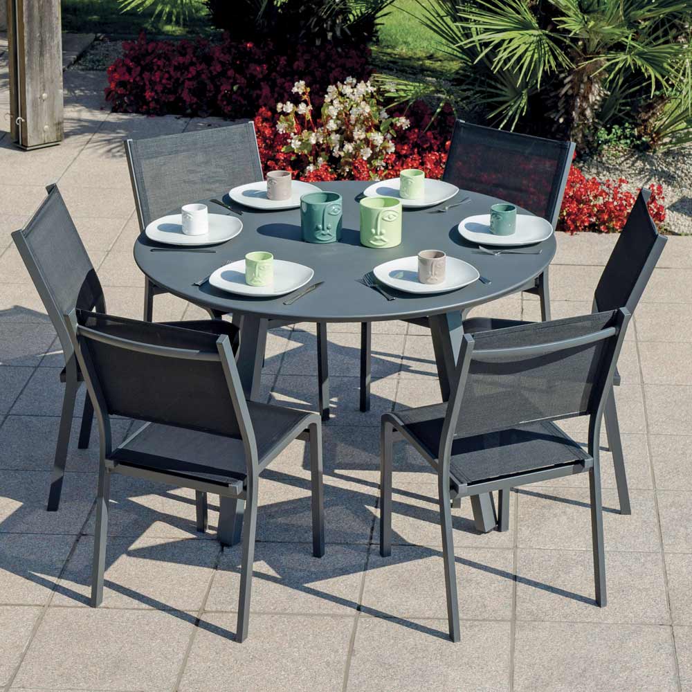 Esta mesa redonda combina a la perfección diseño moderno y funcionalidad , ideal para amueblar con elegancia cualquier espacio exterior. Con un diámetro de 120 cm , ofrece una superficie espaciosa y acogedora, perfecta para almuerzos, aperitivos o momentos de relax al aire libre.