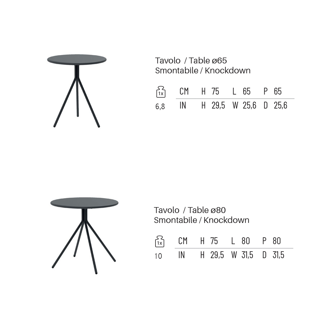 Uso y mantenimiento : Durante el invierno, se recomienda almacenar el producto en lugares cerrados y secos para evitar la condensación de humedad. Si los productos se encuentran cerca de una zona costera, se recomienda limpiar las superficies cada dos o tres meses con detergentes suaves. También se recomienda no dejar telas sintéticas impermeables sobre las superficies de las mesas durante mucho tiempo, ya que podrían dañar la pintura.