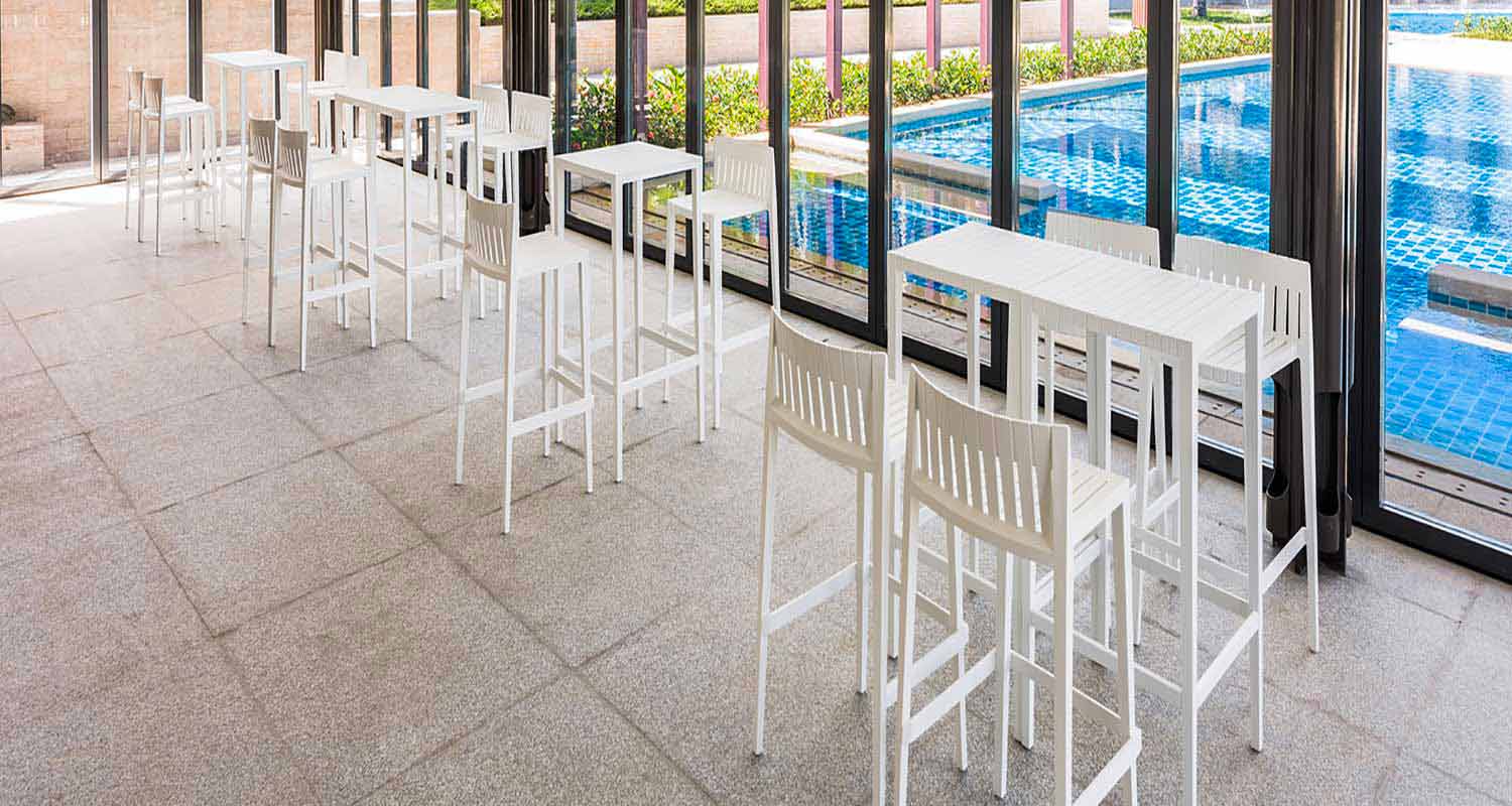 Mesa de jardín colección Spritz de Vondom, en polipropileno y fibra de vidrio