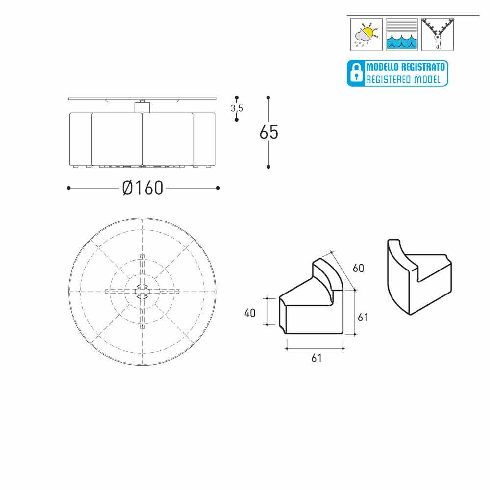 NB . La colección es compatible con la luz del sol y la lluvia. Recomendamos un mantenimiento regular y una atención especial a la protección de los artículos en caso de condiciones climáticas adversas (hielo, granizo, cambios de temperatura, humedad, calor persistente, tórrido o frío extremo). La durabilidad e integridad de estos artículos dependen del cuidado con el que se mantienen. Para productos de aluminio y acero (43, 304Ep, 316), incluso si está protegido por tratamientos y acabados adecuados para uso en exteriores, es esencial evitar que el agua se estanque dentro del producto. De hecho, todos los artículos presentan perforaciones técnicas necesarias para la aplicación de tratamientos y acabados protectores. La introducción de agua en esos agujeros y su estancamiento puede causar oxidación en las partes internas de las tuberías.
