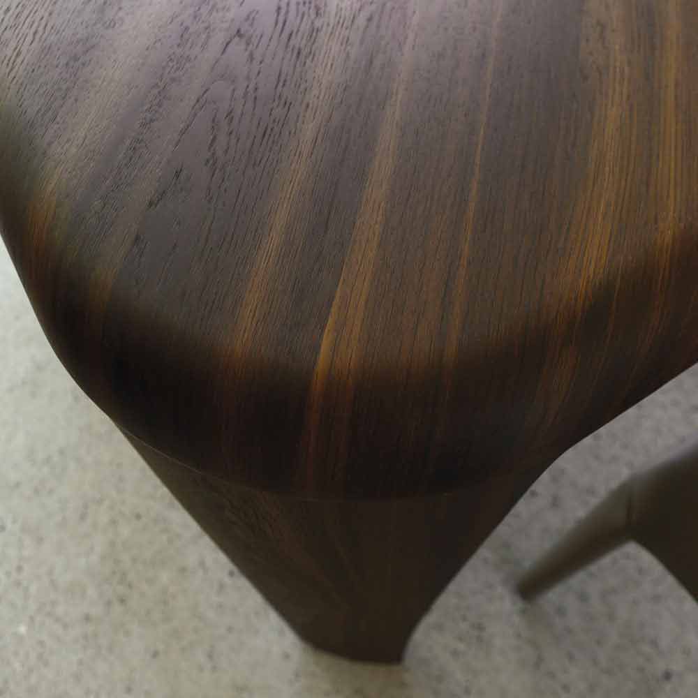 Una mesa de madera, siguiendo un patrón libre, donde las líneas son suavemente curvas y libres de cualquier borde.