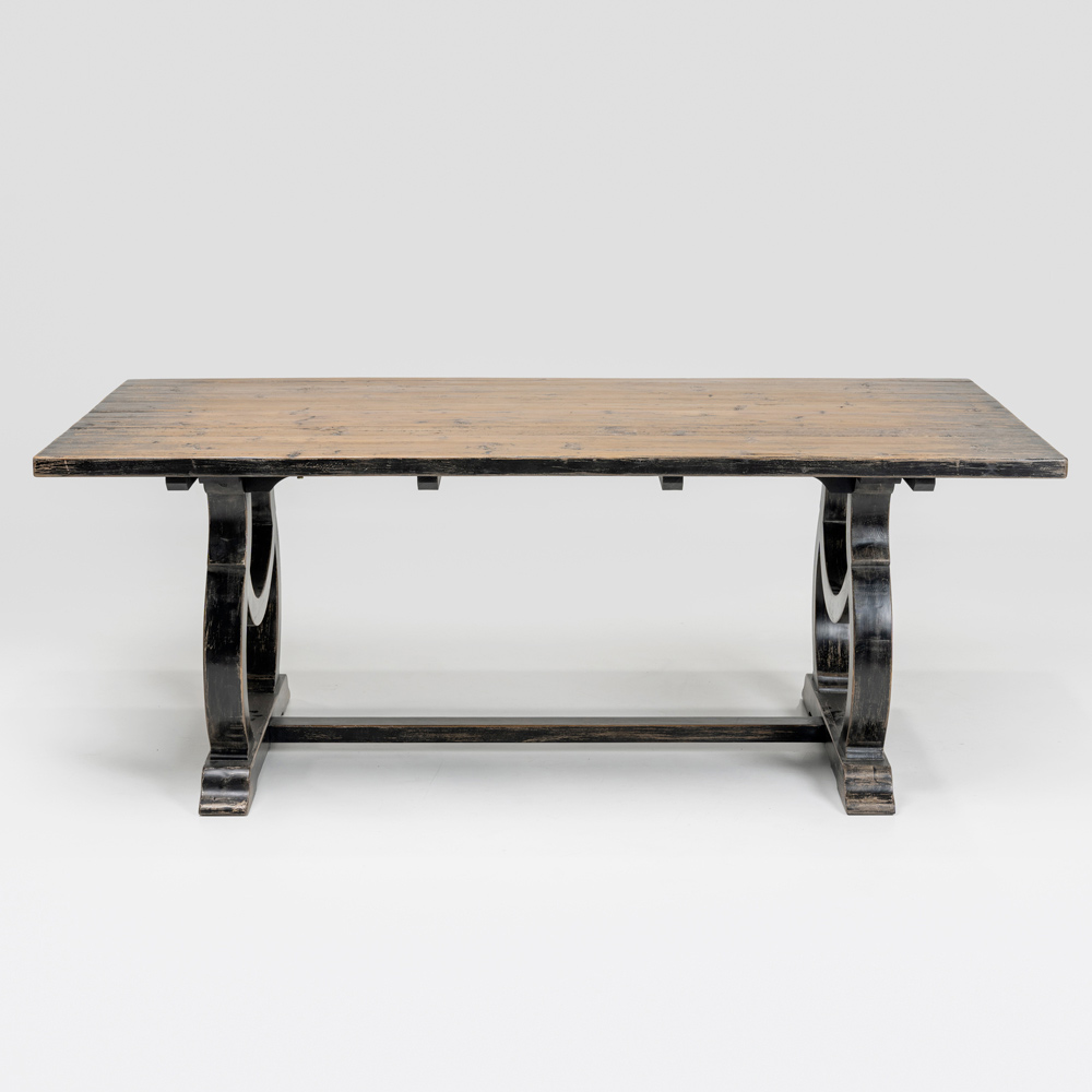 Esta mesa de pino presenta un refinado acabado antiguo lavado , que le da un aspecto auténtico y desgastado, resaltando la veta natural de la madera. Su diseño sólido y sus patas contorneadas le confieren un marcado carácter decorativo.