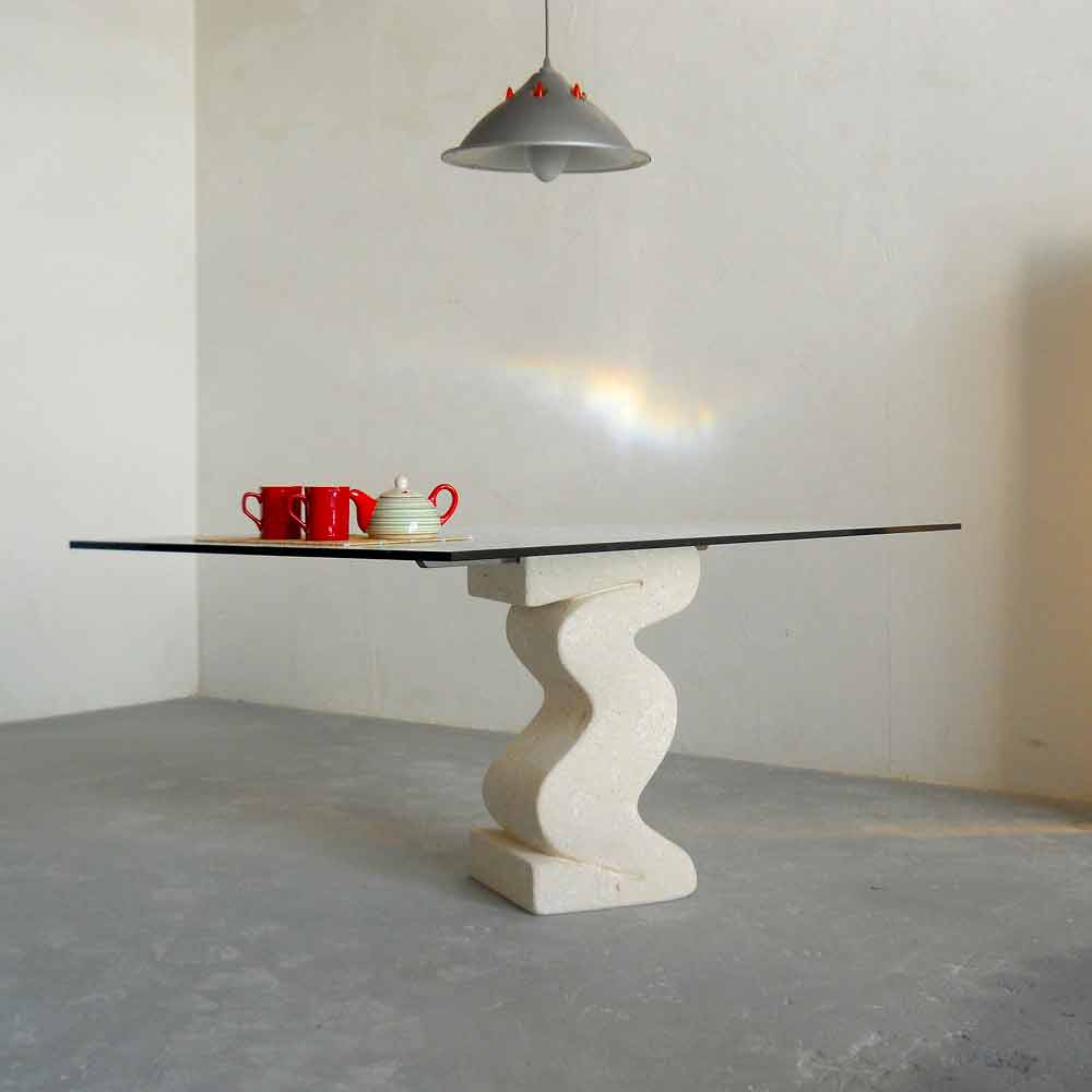 Mesa de piedra de Vicenza y cristal esculpida a mano Anteros