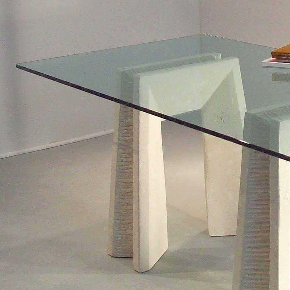 Mesa de comedor moderna rectangular, realizada enteramente en Italia, con base doble de piedra natural de Vicenza, esculpida manualmente directamende del bloque de piedra.