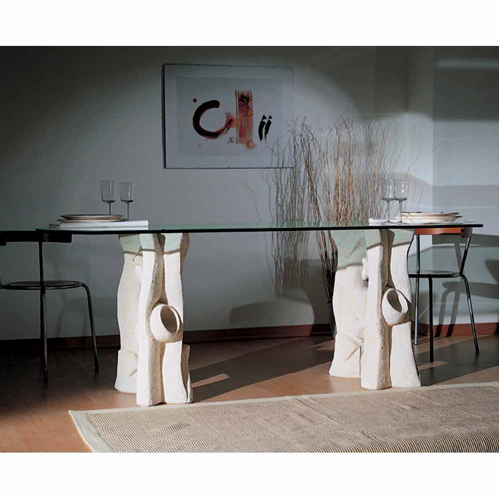 Mesa de piedra de Vicenza y cristal esculpida a mano Daiana