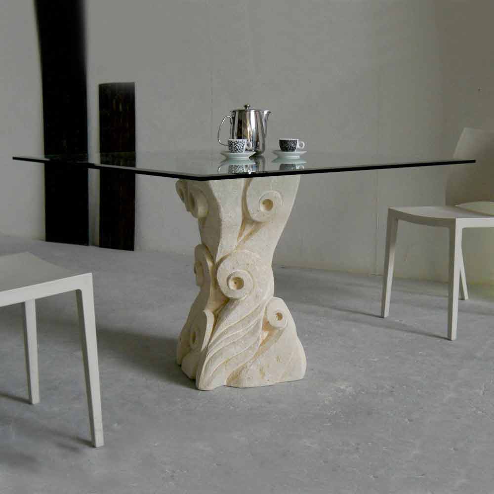 Mesa de piedra de Vicenza y cristal esculpida a mano Giasone