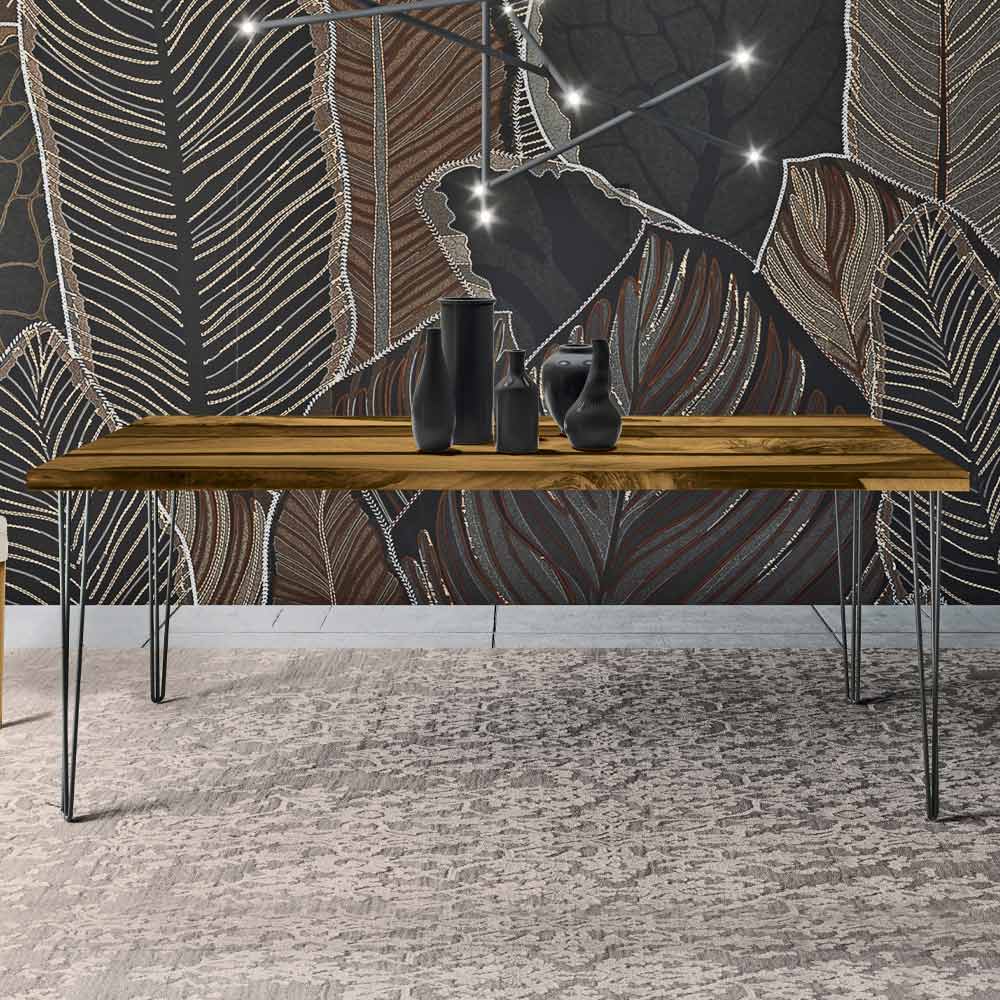 Mesa fija rectangular de diseño con tapa de madera y resina Made in Italy