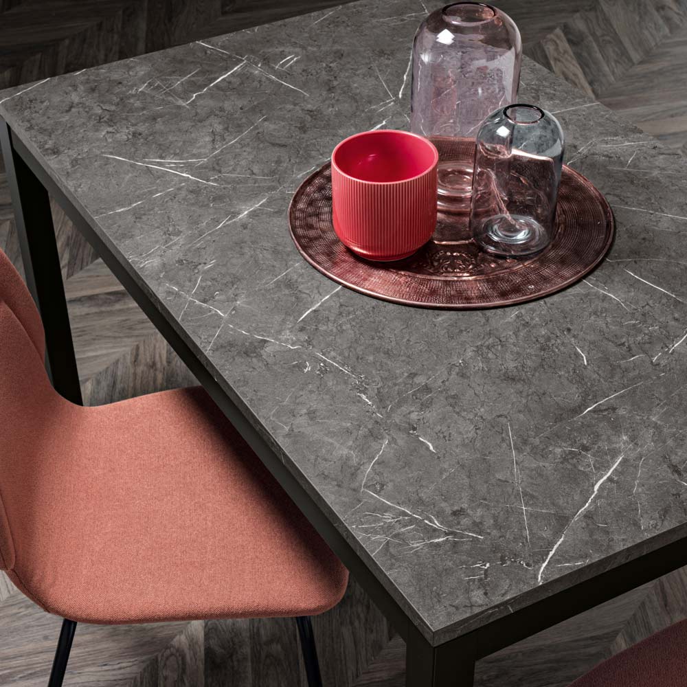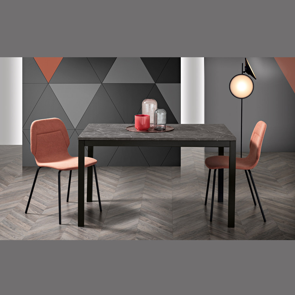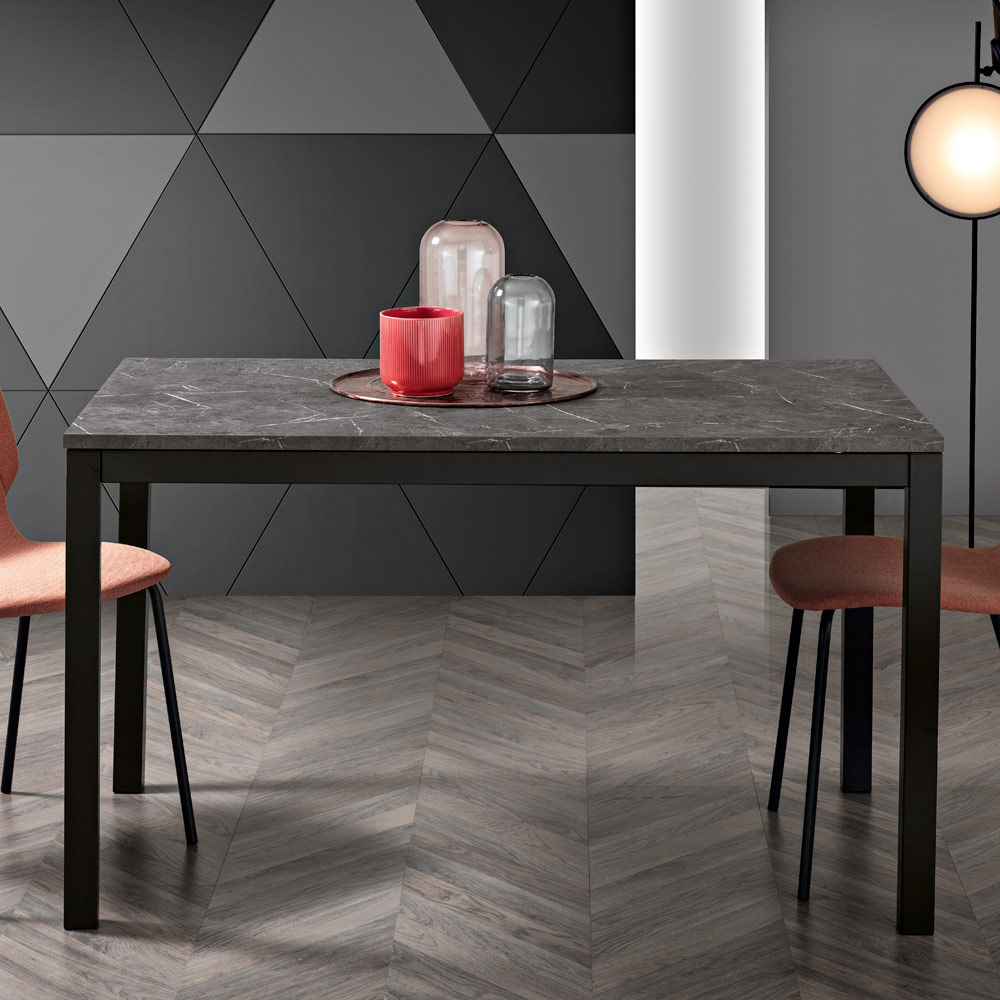 Made in Italy. Descubra el encanto contemporáneo y la sofisticación atemporal de esta mesa de comedor . Una majestuosa superficie de melamina sostenida por una robusta estructura con elegantes patas metálicas . Transforma cada comida en una ocasión especial.