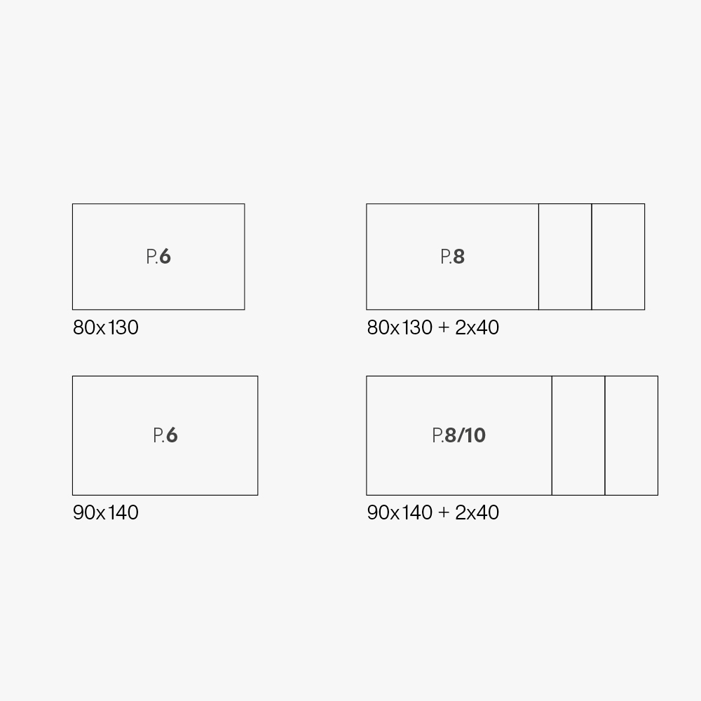 Tallas disponibles:- largo 130/210 cm x fondo 80 cm x alto 75,5 cm - 2 extensiones de 40 cm
