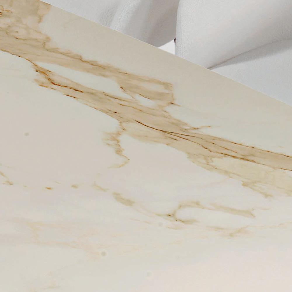 - Calacatta oro veteado pulido (espesor vidrio 10 mm + cerámica 5 mm)