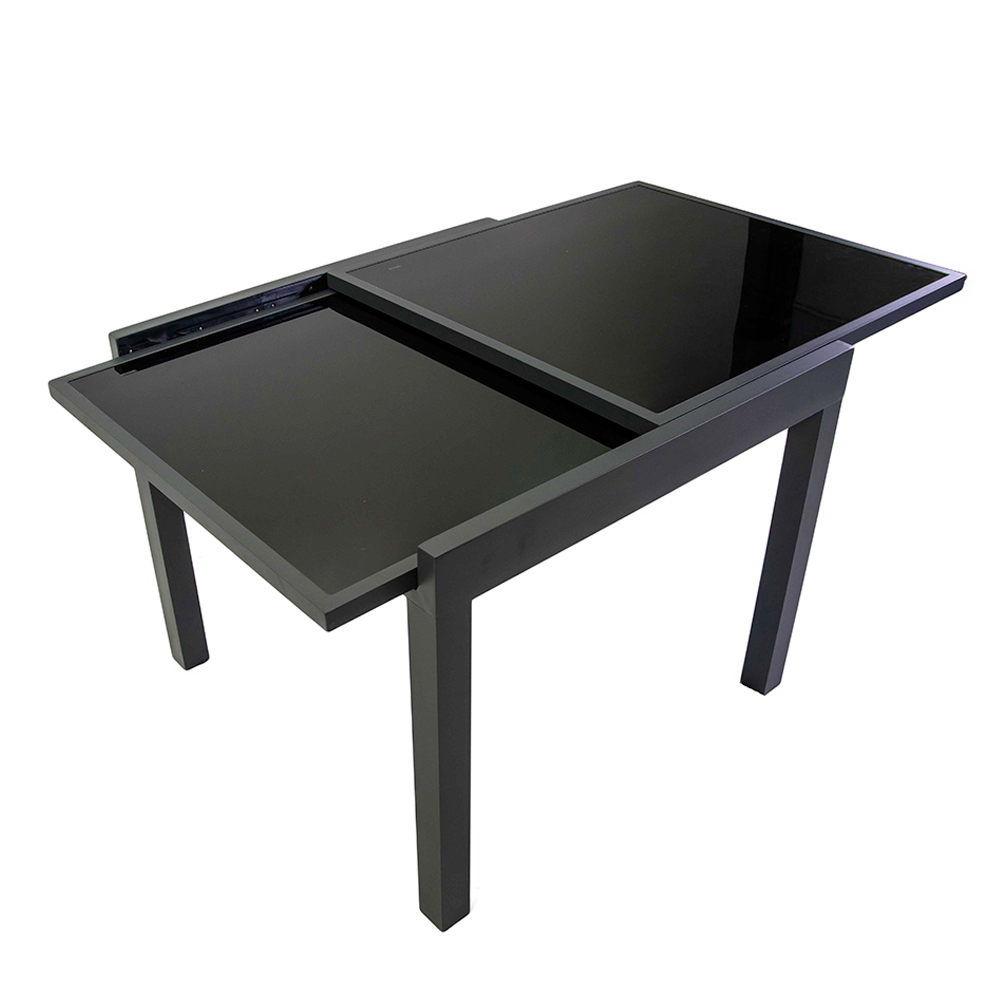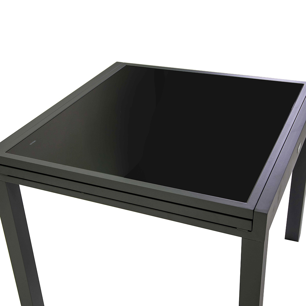 Esta mesa extensible de aluminio con tapa de cristal templado es ideal para aquellos que buscan funcionalidad y estilo en un solo producto. Esta mesa elegante y moderna destaca por su acabado que se adapta perfectamente tanto a ambientes de interior como de exterior.