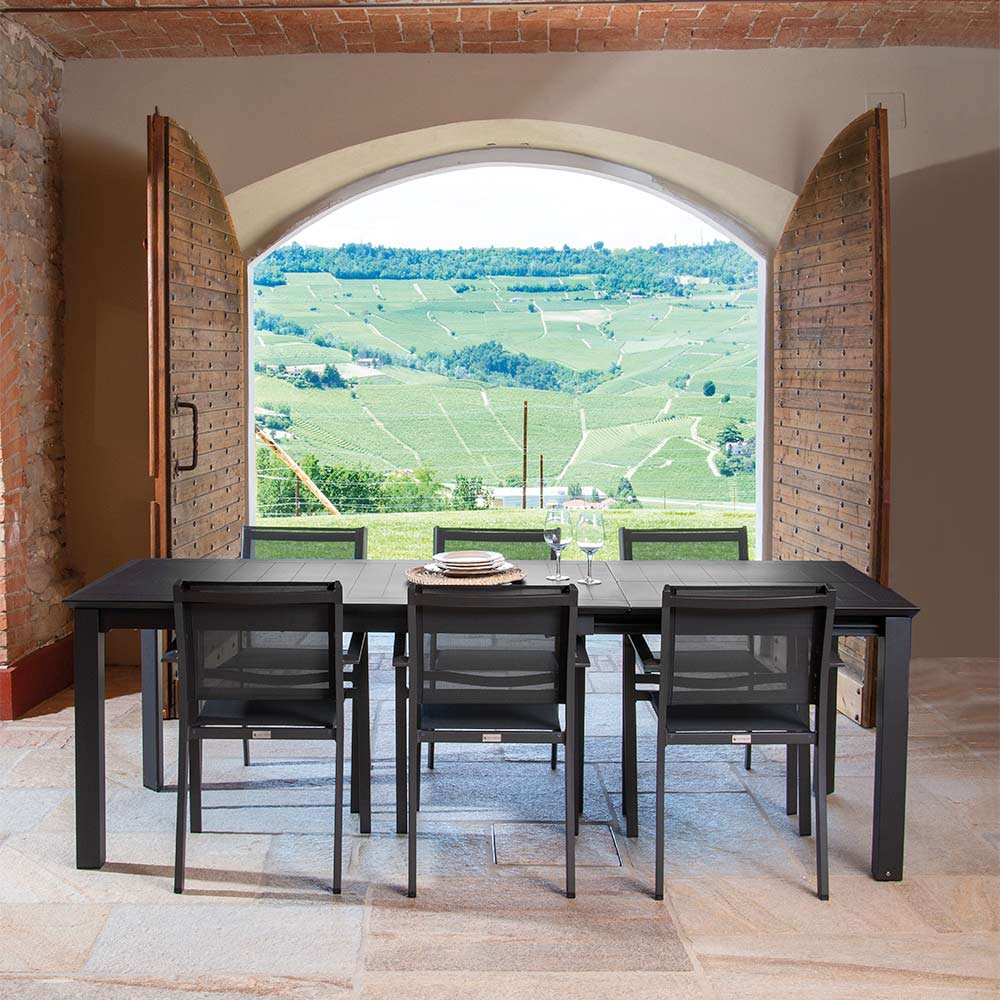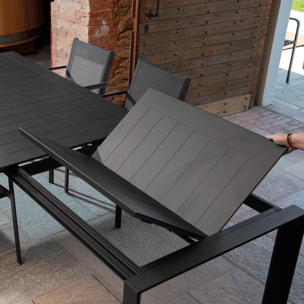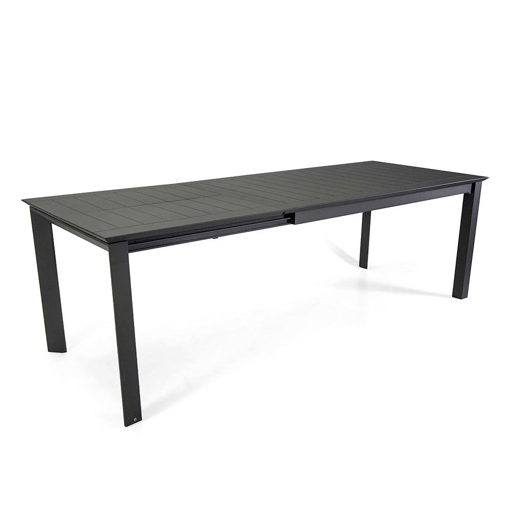 Esta mesa extensible de aluminio es la elección ideal para aquellos que buscan versatilidad sin comprometer el estilo y la calidad. Fabricada a partir de un resistente armazón de aluminio , esta mesa combina durabilidad con ligereza, lo que la hace perfecta para su uso en exteriores en cualquier condición meteorológica. El acabado añade un toque de elegancia moderna que encajará perfectamente en cualquier entorno al aire libre, desde el jardín a la terraza.