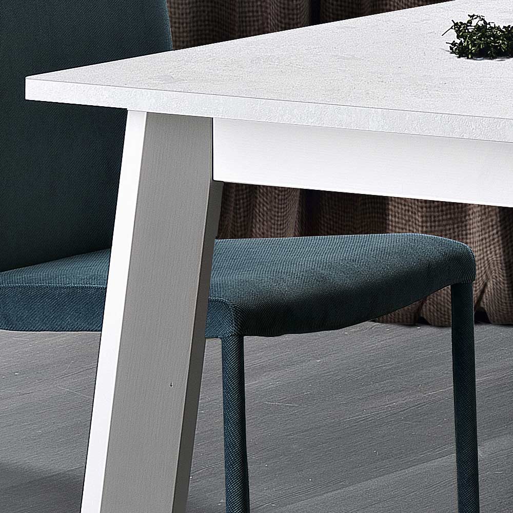 Mesa de comedor extensible compuesta por estructura de melamina, patas de madera maciza de haya lacada en blanco mate y tapa de melamina de 22 mm de espesor. El innovador diseño de la base coordina elegantemente con la forma de la tapa, casi formando una "escultura" dedicada a nuestro hogar. Sencillo y funcional, se adapta a cualquier ambiente, desde el clásico al moderno y aporta a cada estancia de la casa un toque de estilo y diseño .