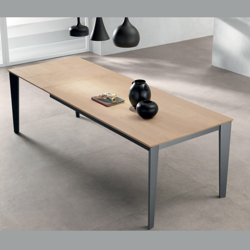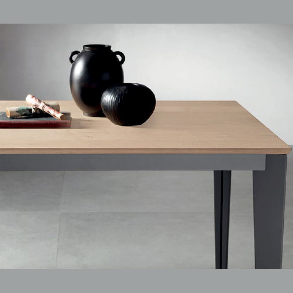 Elegante y funcional, esta mesa rectangular extensible combina diseño moderno y practicidad. El tablero de chapa de roble natural de 22 mm de grosor realza la veta cálida y auténtica de la madera, mientras que las patas de metal pintado en antracita aportan estabilidad y un toque contemporáneo.