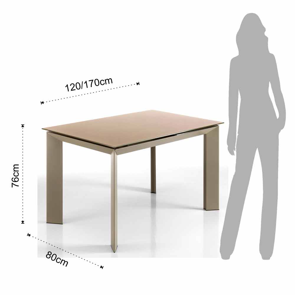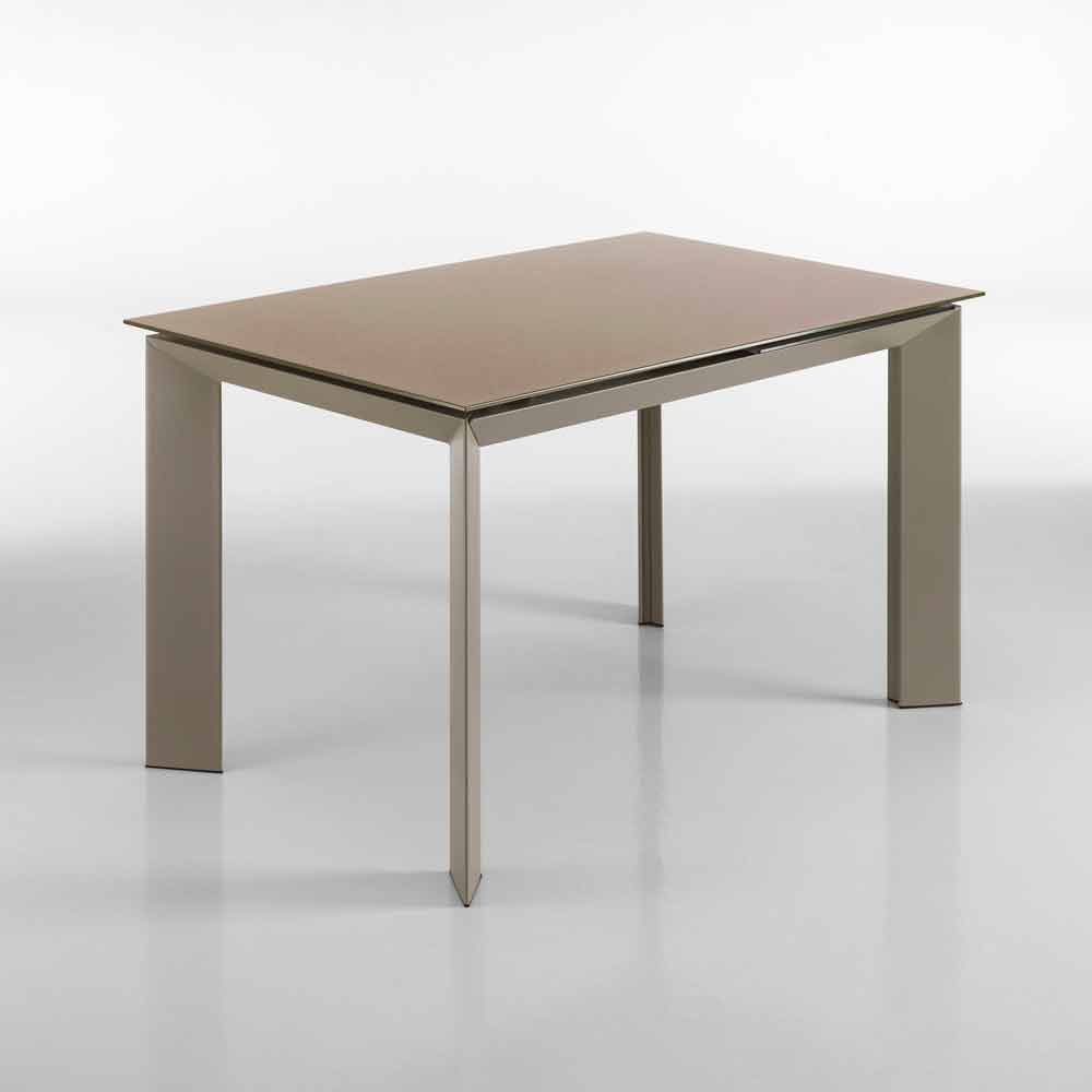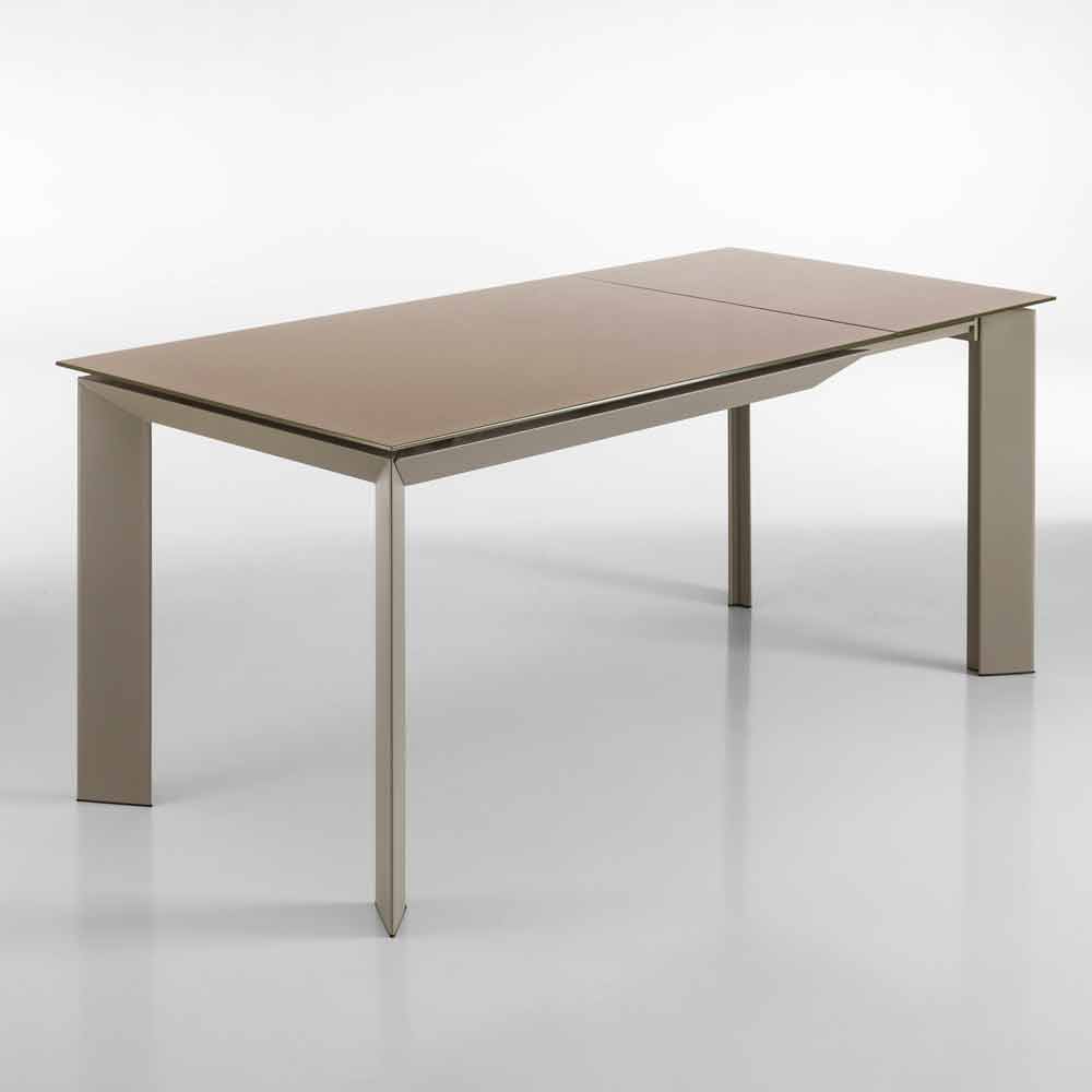 Mesa extensible con tablero de cristal templado color tórtola Zeno