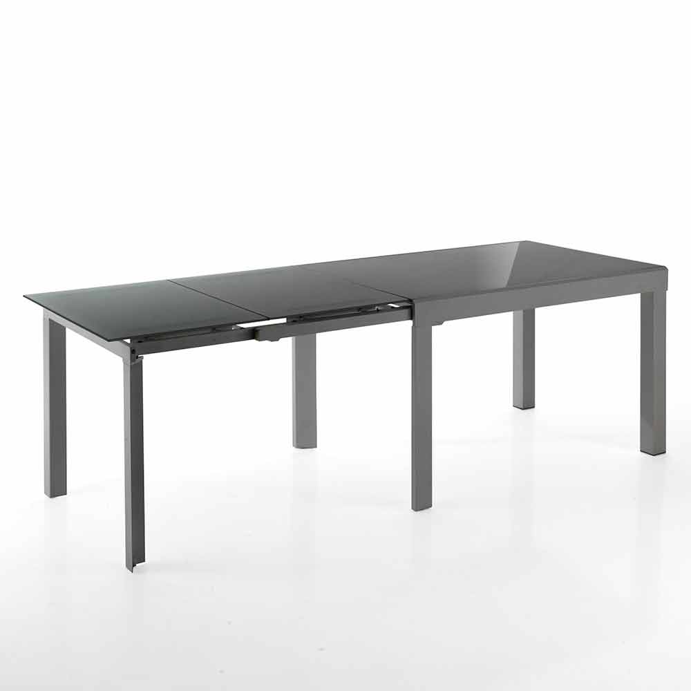 - tablero de vidrio templado pintado en gris y base de metal pintada en gris mate;