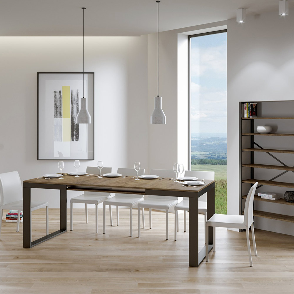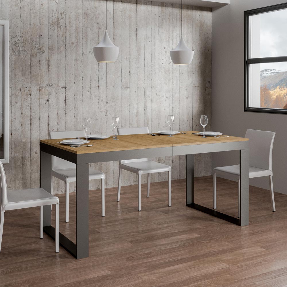 Esta mesa destaca por su versatilidad, gracias al ingenioso mecanismo que permite extenderla fácilmente, transformándola de una cómoda mesa a una generosa mesa capaz de acomodar a múltiples invitados. È es ideal para aquellos a los que les gusta entretener a amigos y familiares o para los que necesitan adaptabilidadà en entornos multifuncionales.