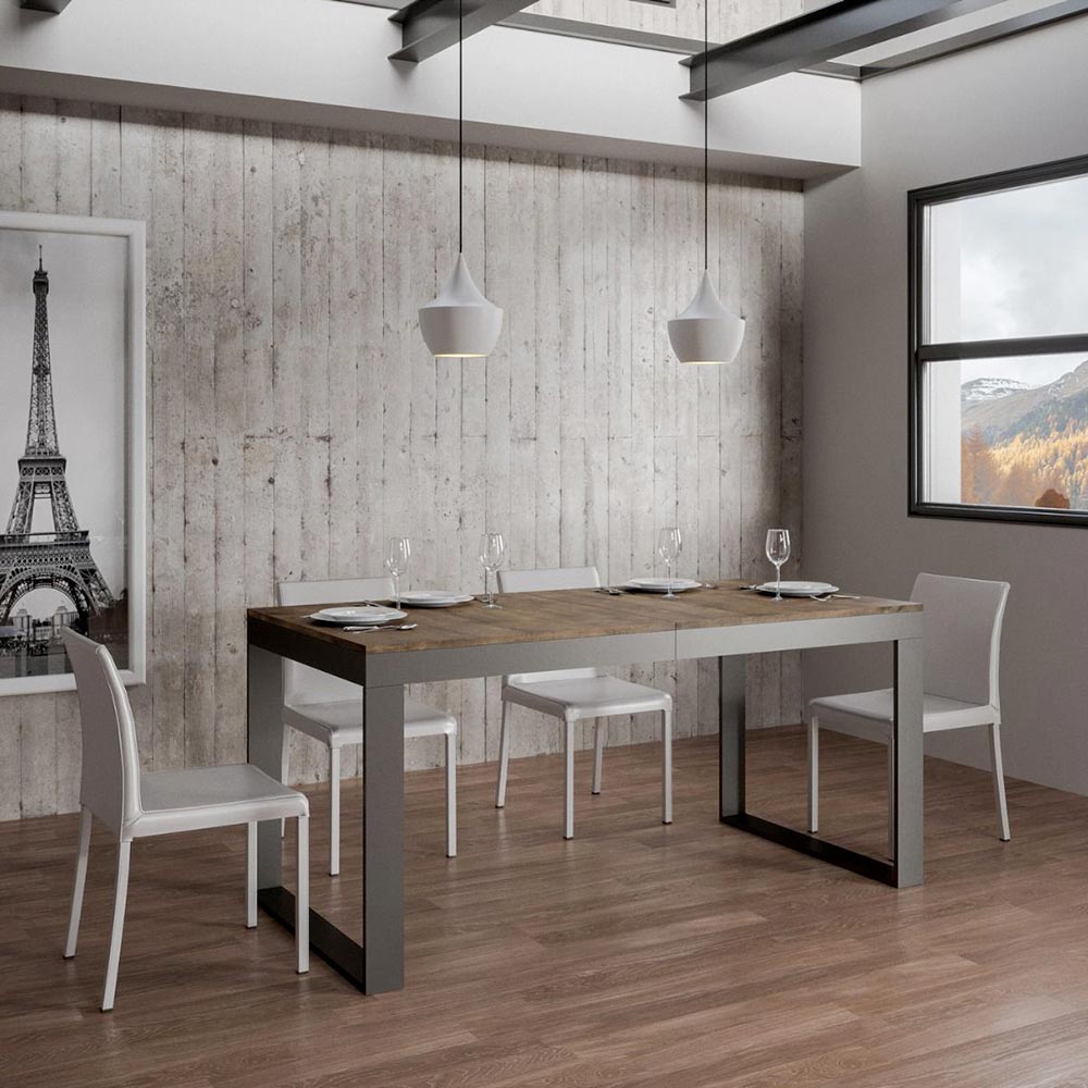 Descubre la esencia del diseño con esta mesa extensible, una obra maestra de flexibilidad y estilo. La resistente estructura de hierro combina a la perfección con el sobre de madera, una combinación que promete añadir un toque de elegancia moderna a cualquier espacio.