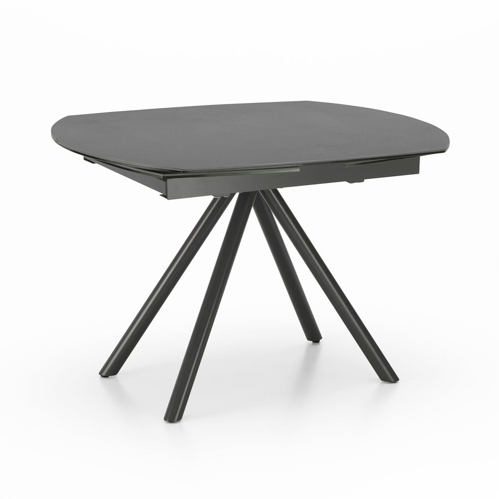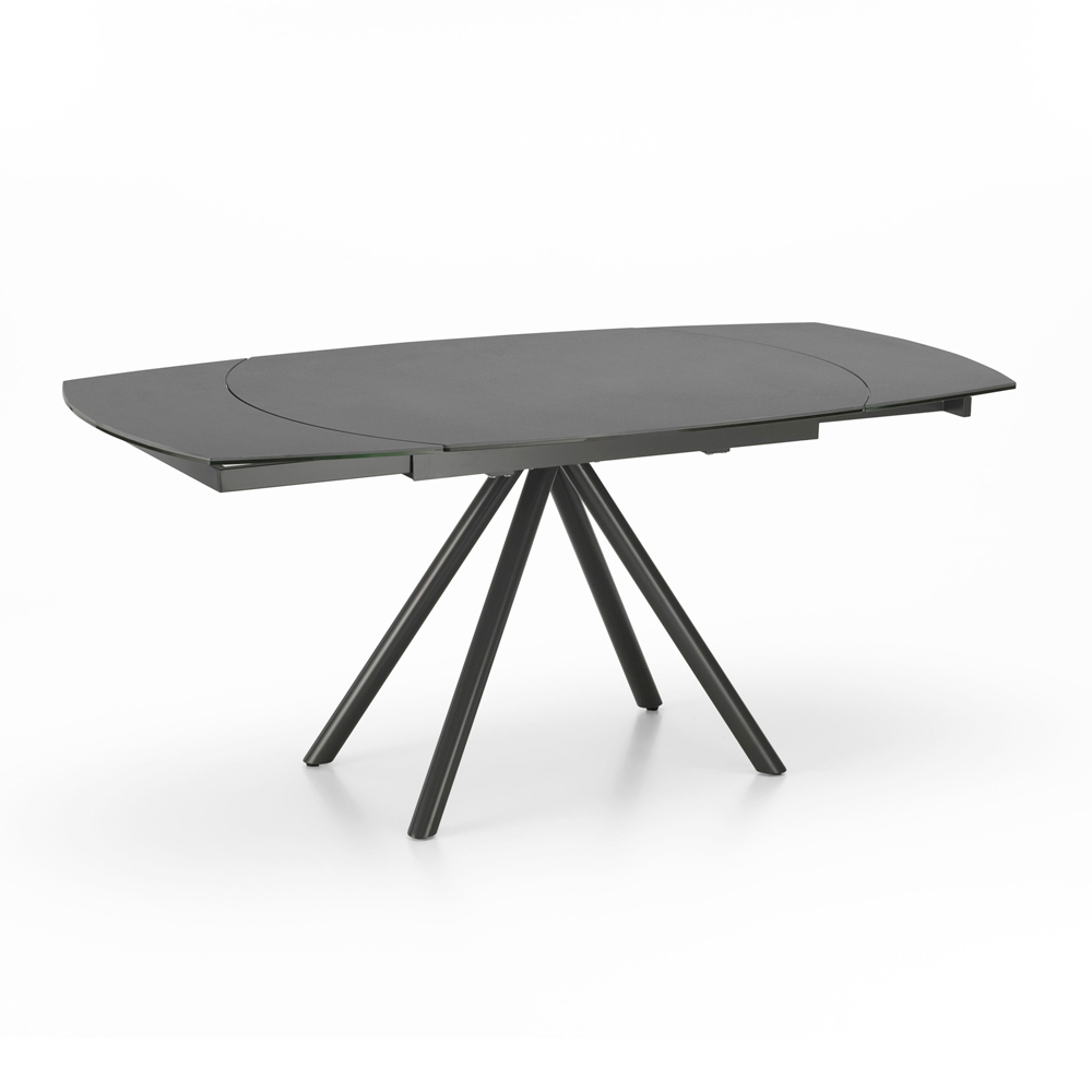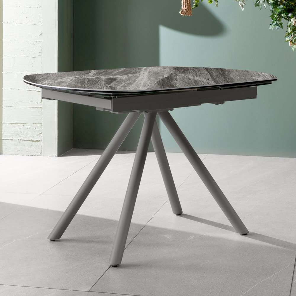 Mesa de comedor extensible de cerámica y metal.