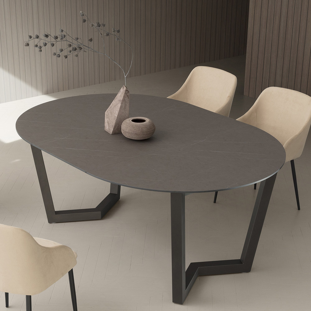 Mesa de comedor redonda con tapa extensible en HPL estratificado Made in Italy.