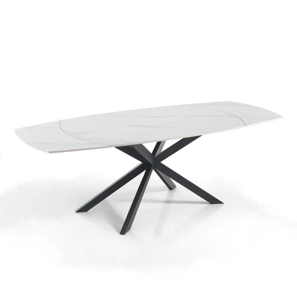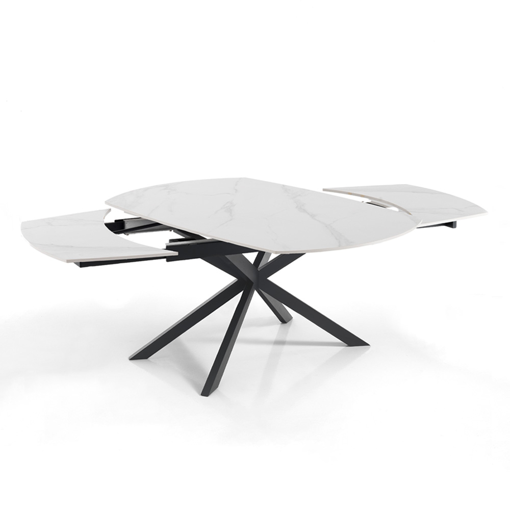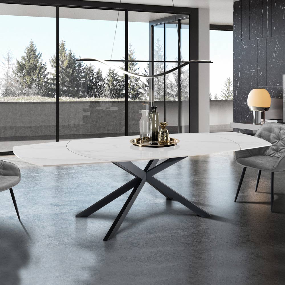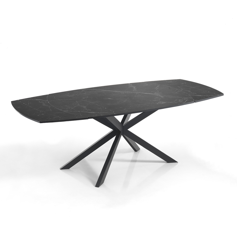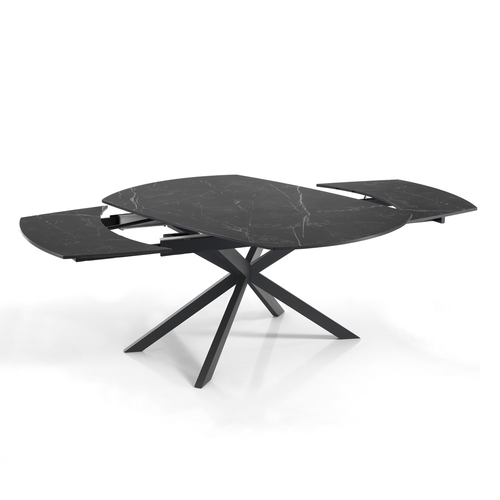 acero pintado de negro mate, extensiones colocadas debajo del tablero con práctico mecanismo giratorio y