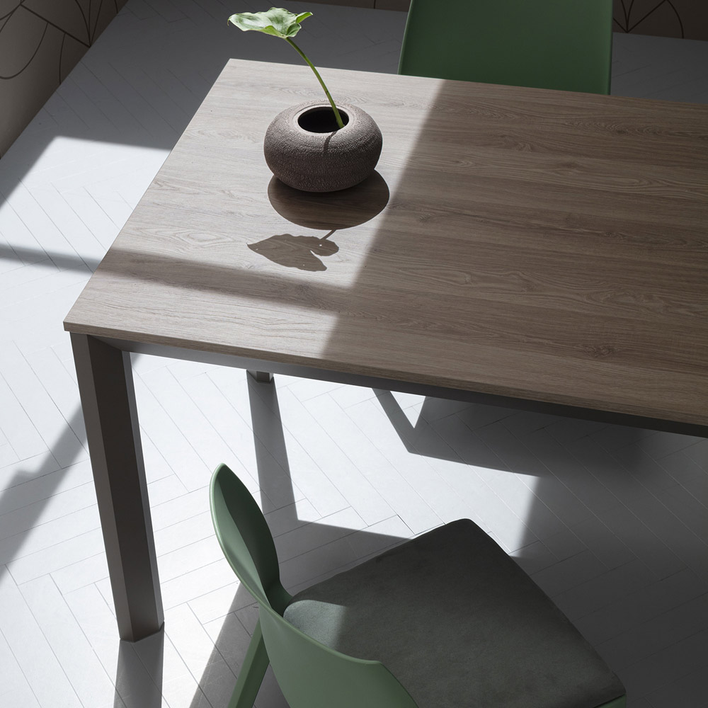 Mesa de cocina extensible con tapa de hpl y patas de aluminio Made in Italy.