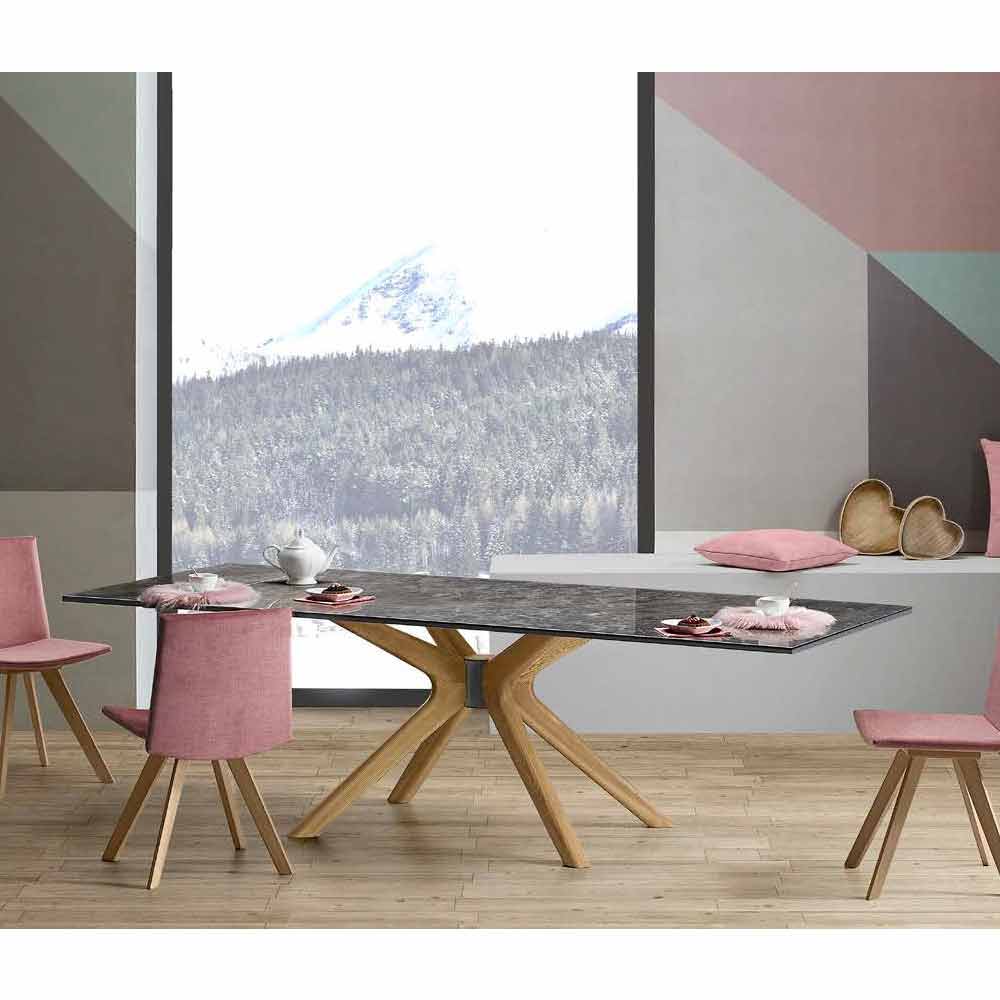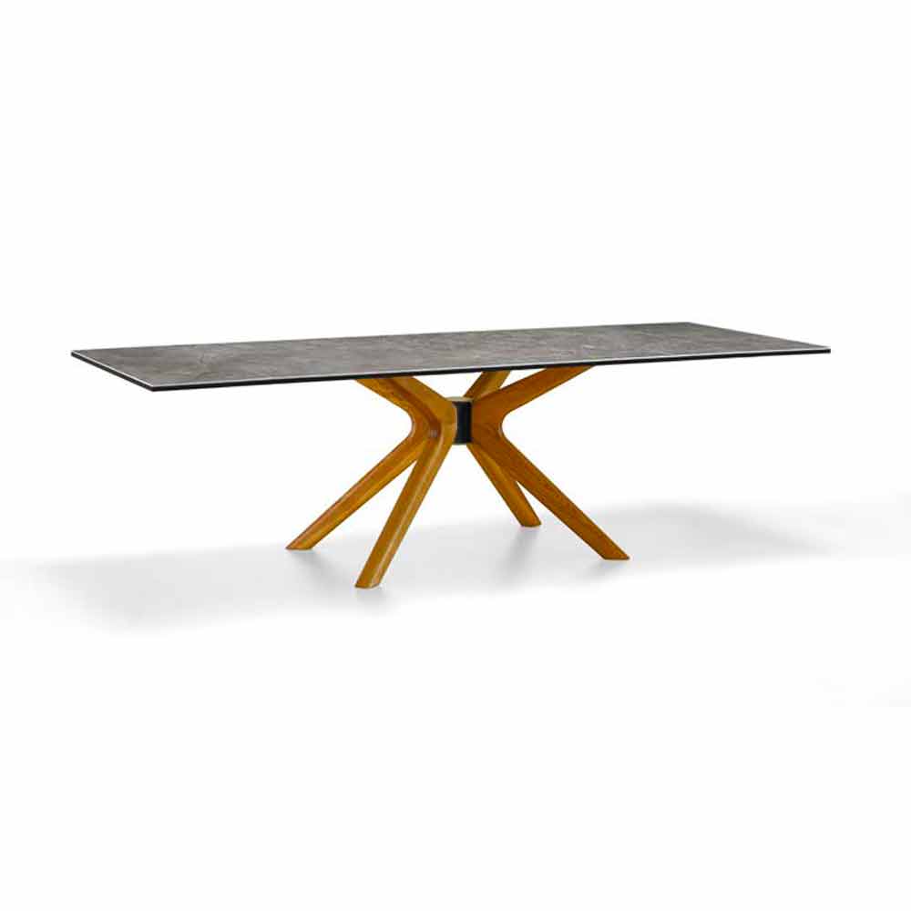 Mesa extensible hasta 260 cm en gres y madera, lujo Made in Italy - Malita