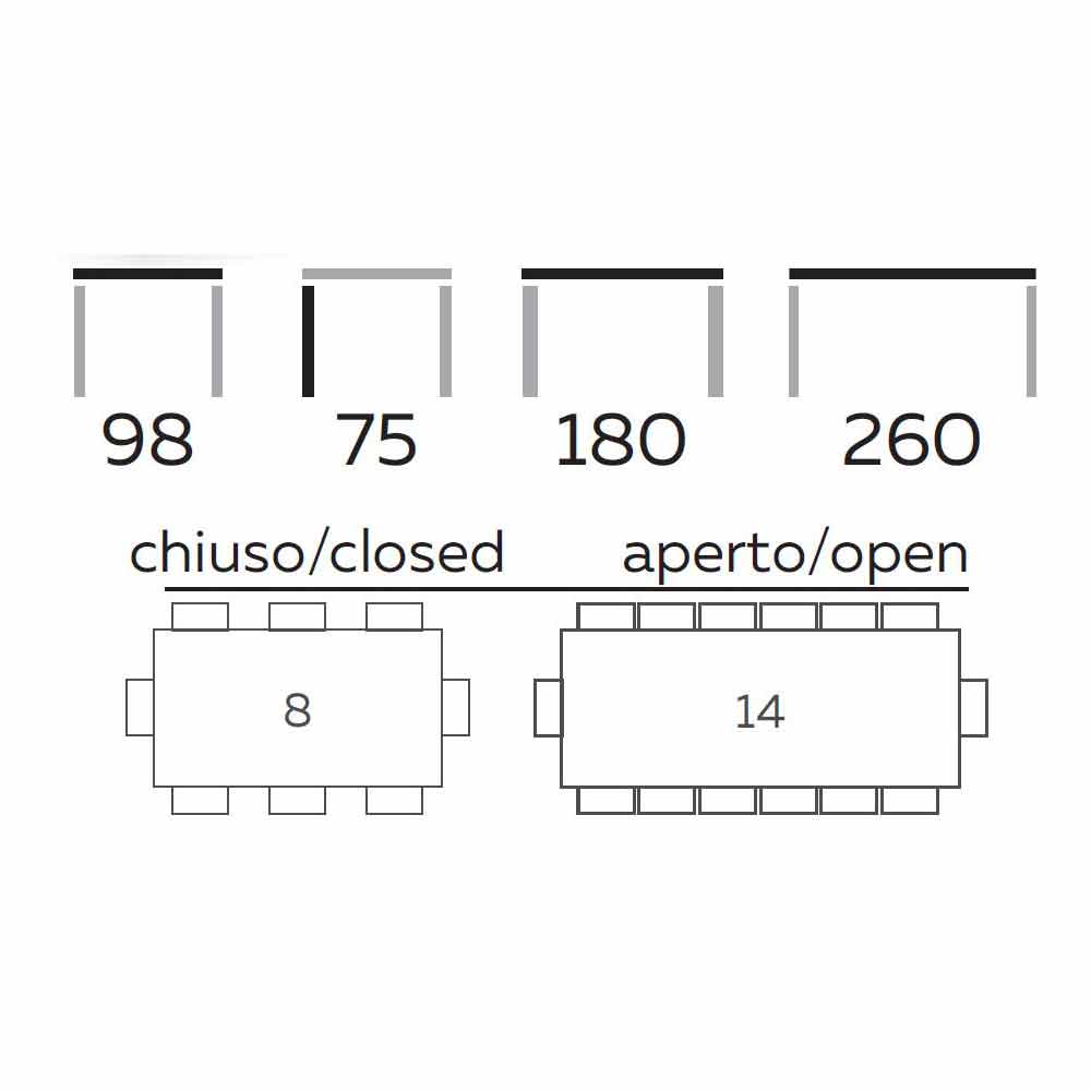 Dimensiones: L 180/260 x P 98 x H 75 cm