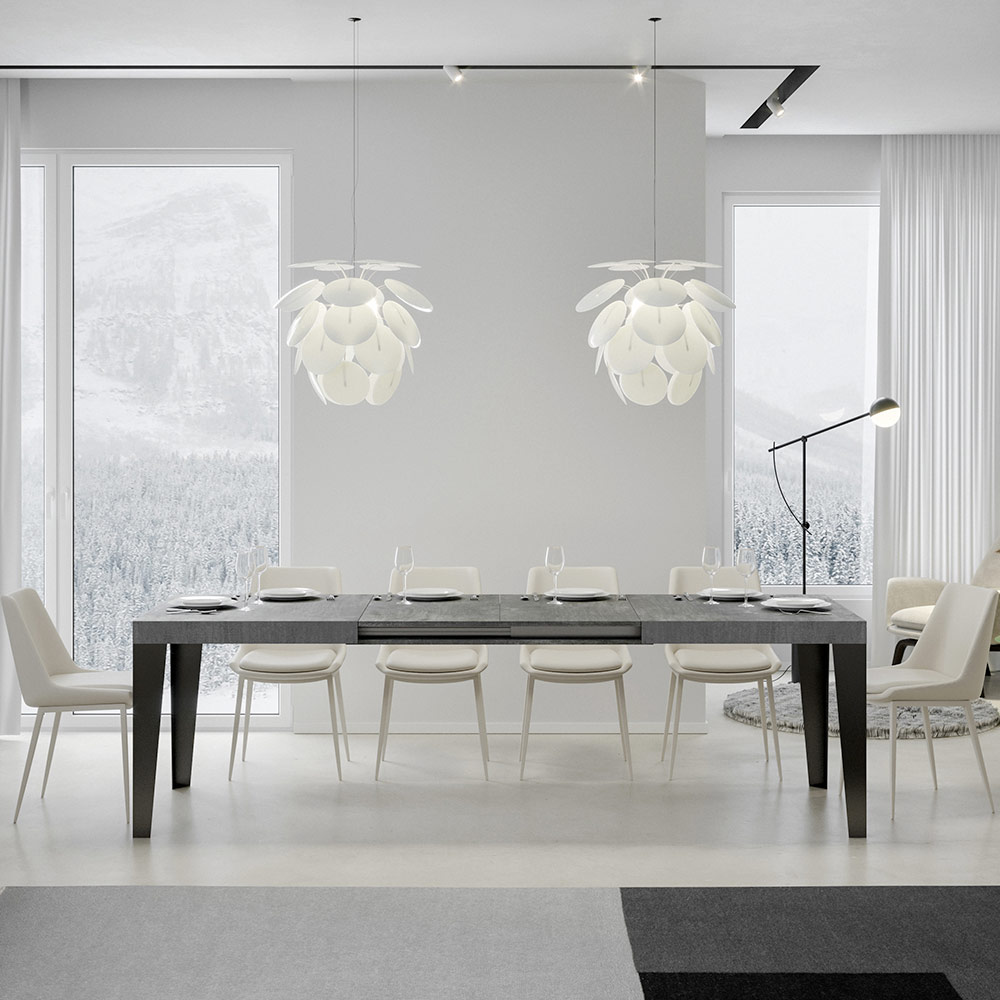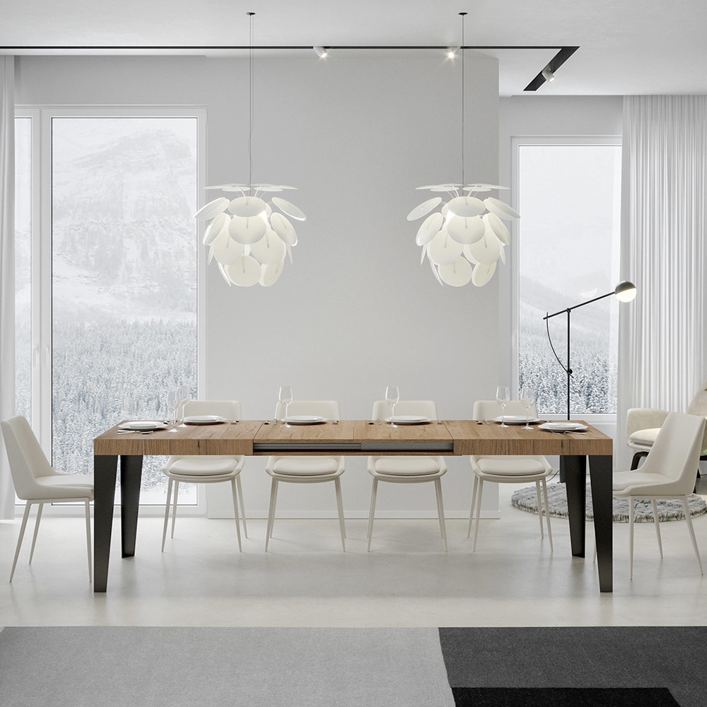 Mesa extensible de micropartículas de madera y hierro fabricada en Italia