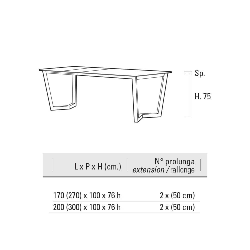 NB : la base de la mesa está disponible en diferentes acabados. No se garantiza la continuidad de la veta entre la tapa y la extensión.