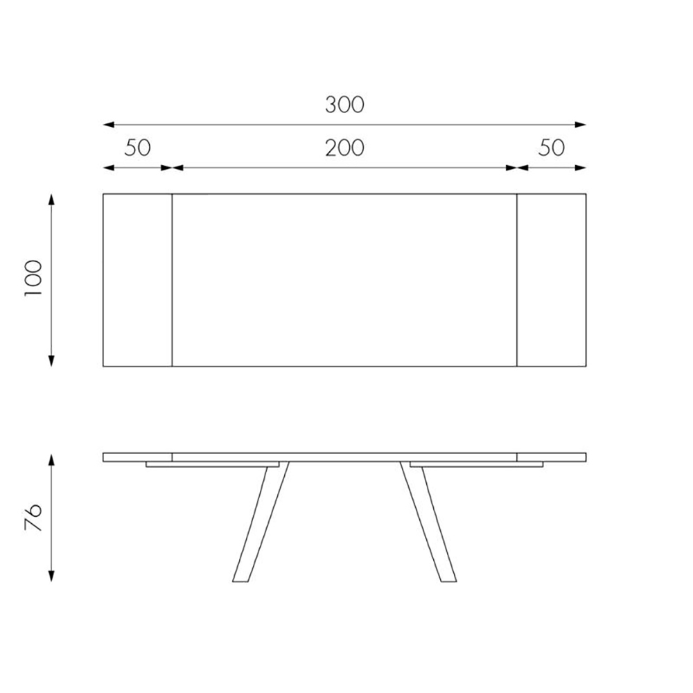 - Largo: 200/300 cm x Fondo: 100 cm x Alto: 76 cm