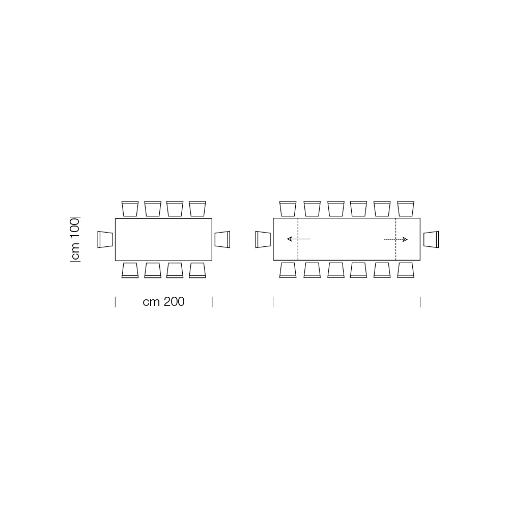 - Largo 200 (278) x Fondo 100 x Alto 77,7 cm con extensiones integradas (grosor 12 mm);