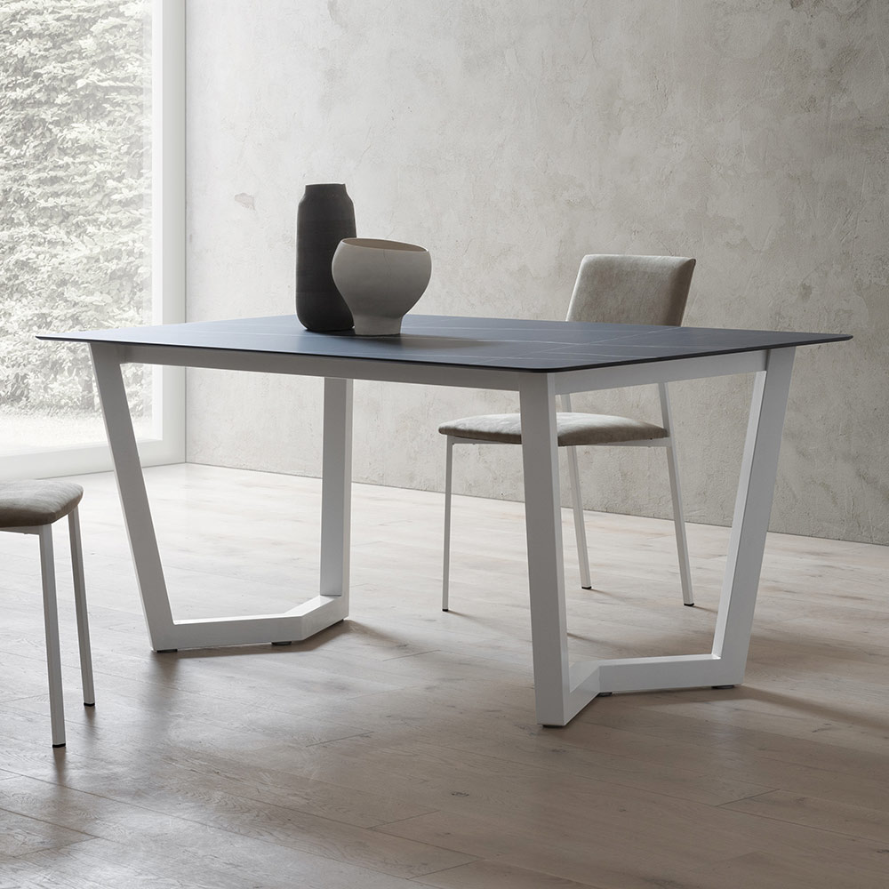 Mesa de cocina extensible con tapa de HPL estratificada y base de metal Made in Italy.