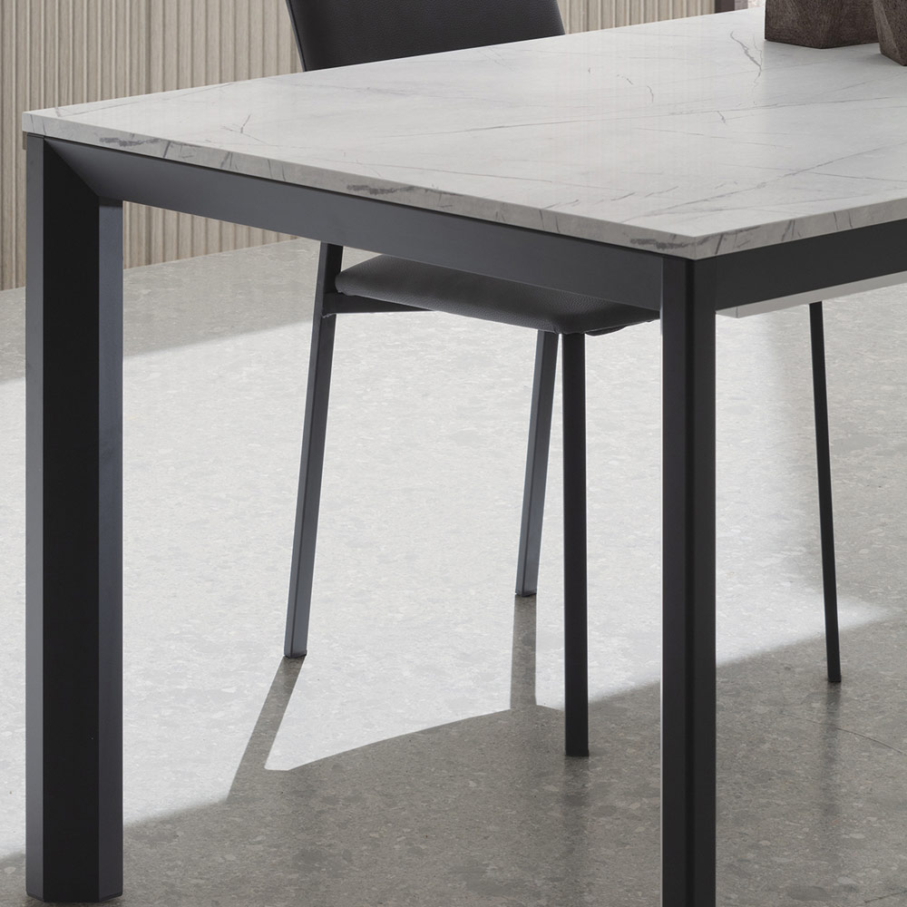 Mesa de comedor extensible con base de aluminio y tapa de HPL Made in Italy.