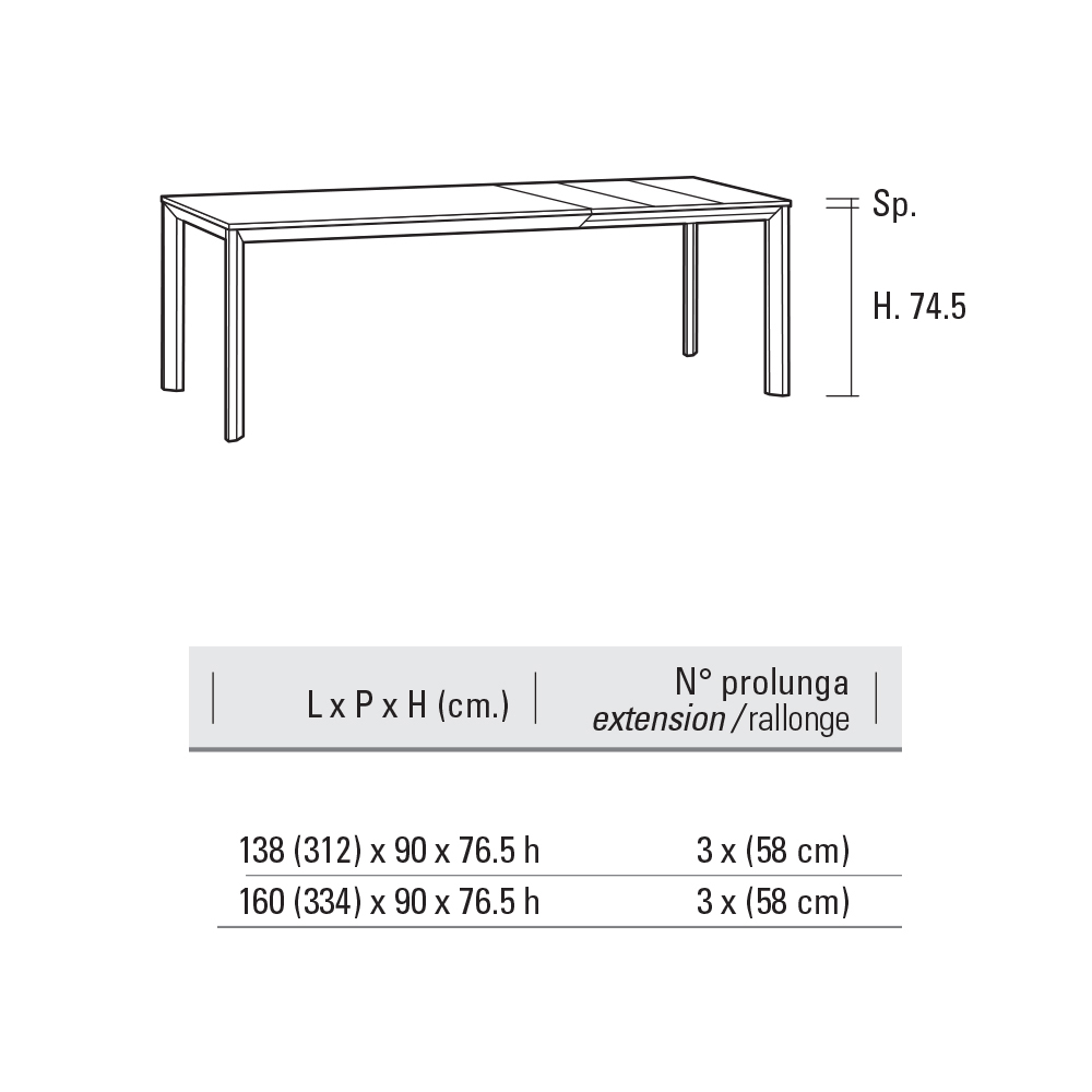 • Largo 160/334 x Fondo 90 x Alto 76,5 cm.