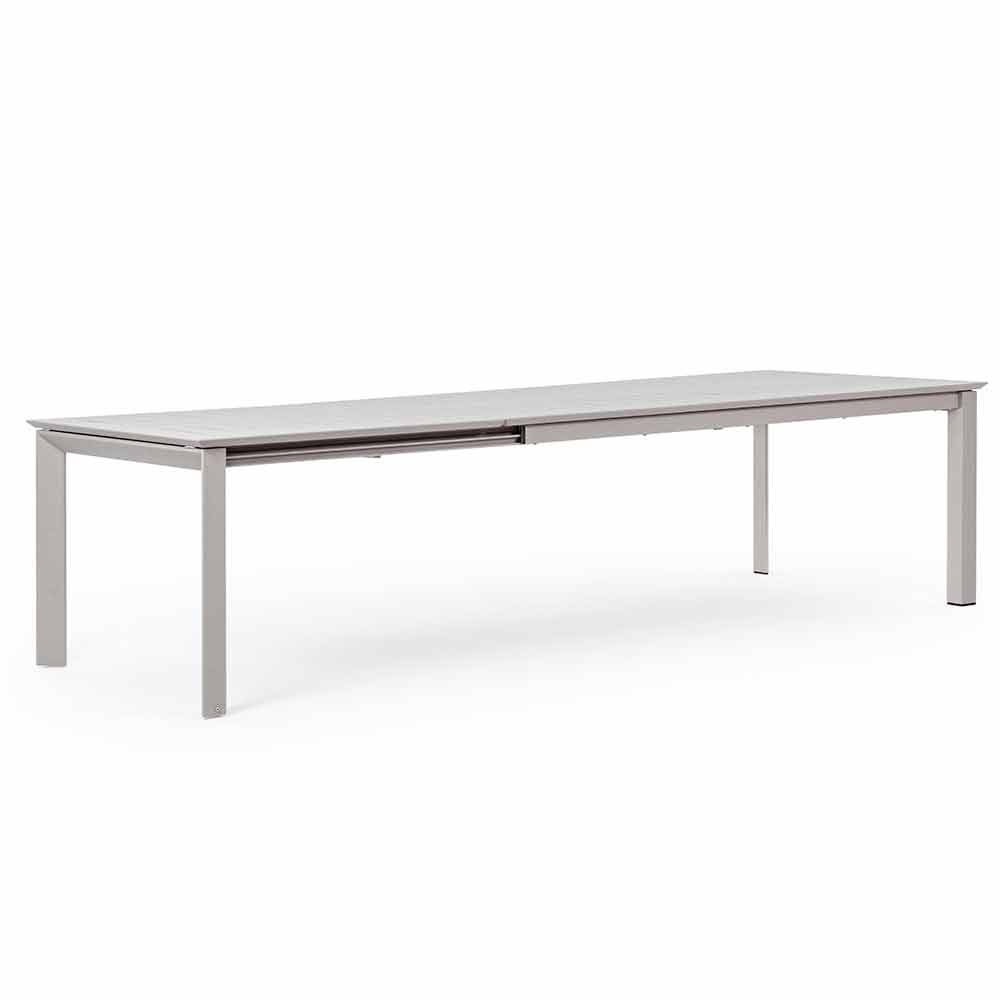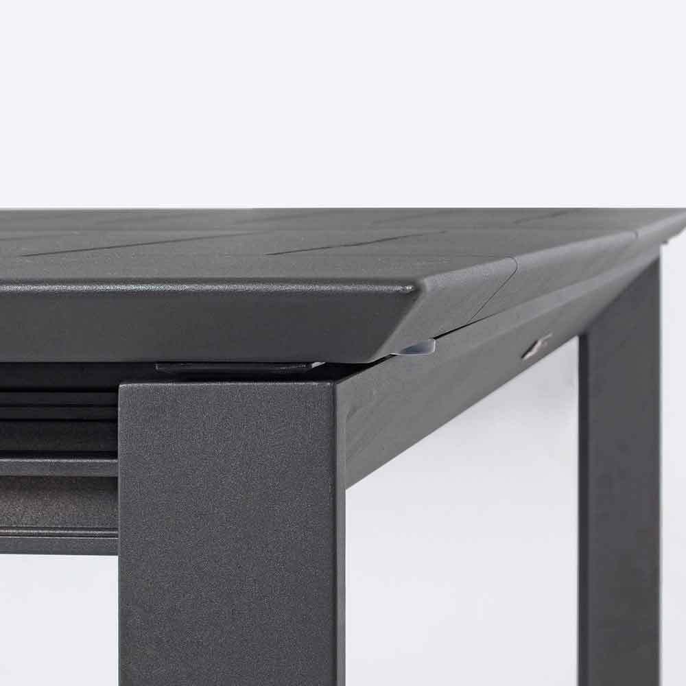 Mesa exterior extensible para 10 personas, diseño moderno, en rastin, antracita o aluminio blanco.