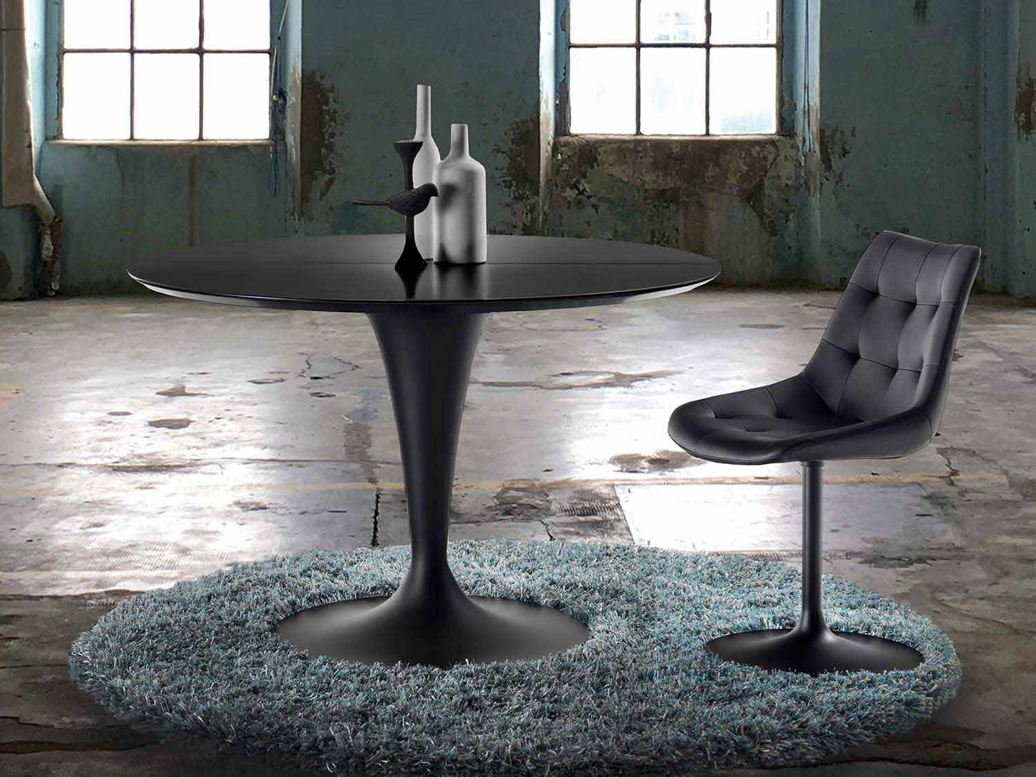 BORGIA es una mesa redonda y extensible, caracterizada por un diseño moderno y original.