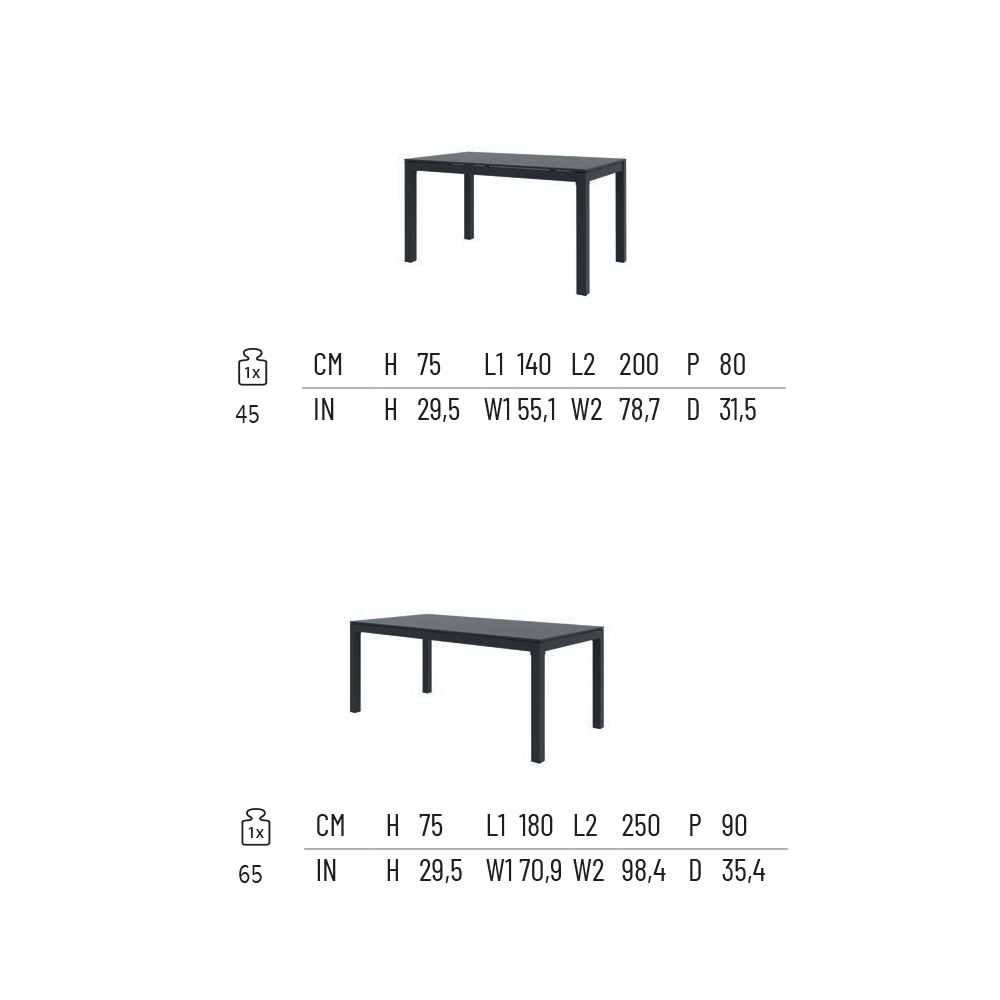- L 140/200 x P 80 x H 75 cm (1 extensión de 60 cm);