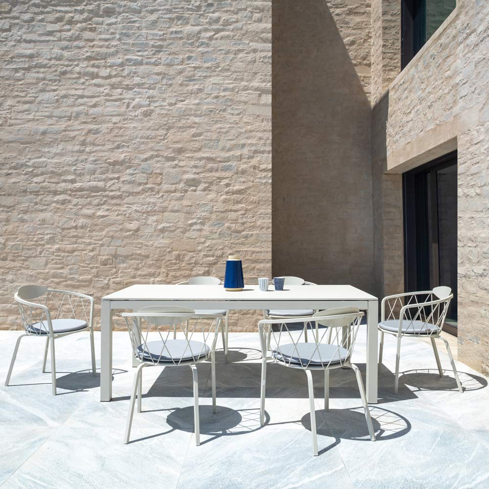 Mesa de comedor de exterior con tablero autonivelante extensible hasta 250 cm