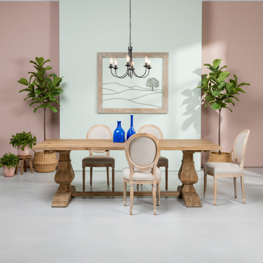 Esta mesa de pino envejecido natural es una pieza con un encanto auténtico y atemporal, ideal para realzar espacios amplios como comedores o salas de estar. El acabado envejecido realza la textura de la madera, resaltando las vetas, los nudos y las imperfecciones que hacen de cada mesa algo único.