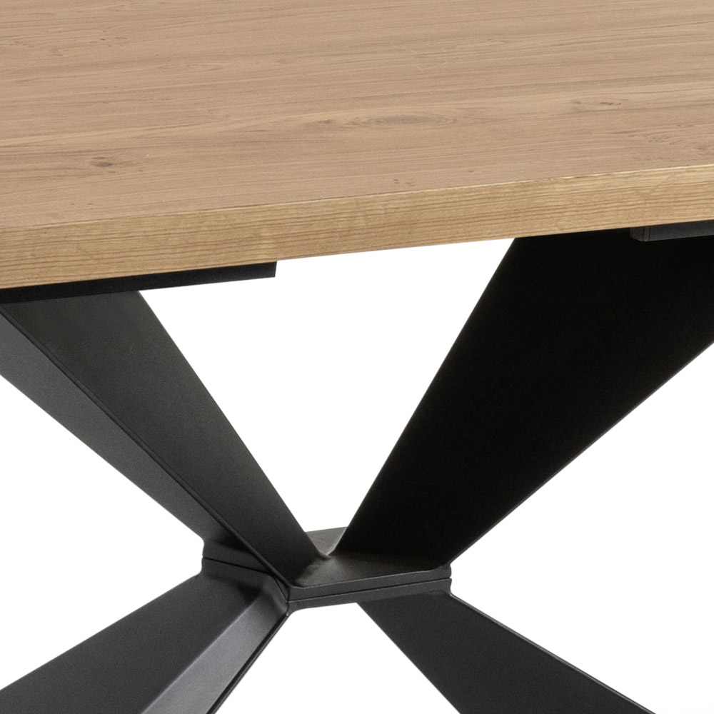 Mesa de salón fija con tapa chapada en roble , patas de metal pintado.