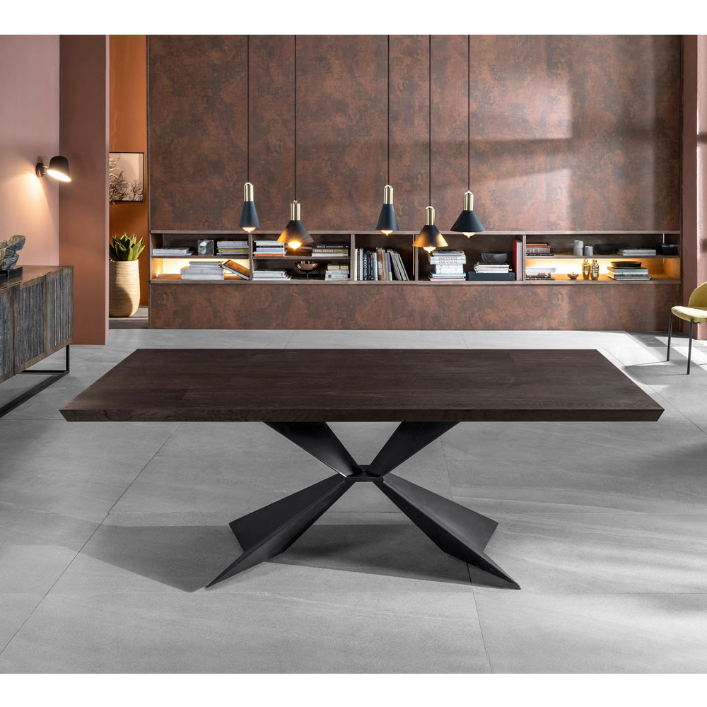Esta mesa, gracias a la forma de sus patas, aporta a la estancia un toque moderno y elegante que combina a la perfección con la referencia clásica de la madera, satisfaciendo así las diferentes necesidades de estilo y diseño. Es una mesa que se convierte en protagonista del salón, ya sea cocina o salón, brindando al cliente momentos de convivencia únicos e inolvidables.