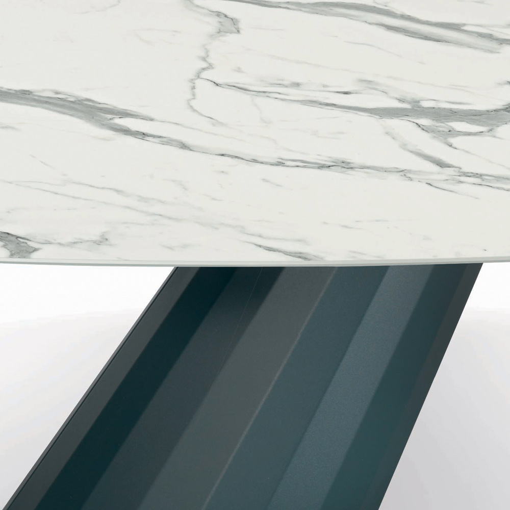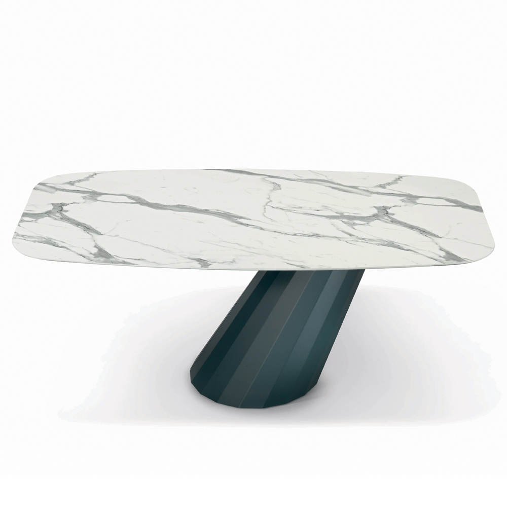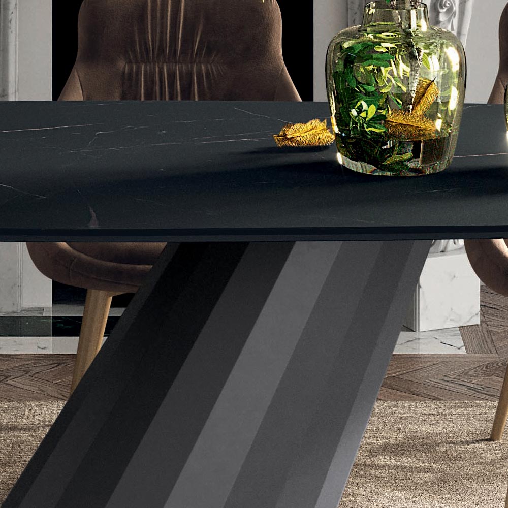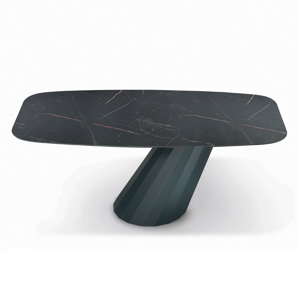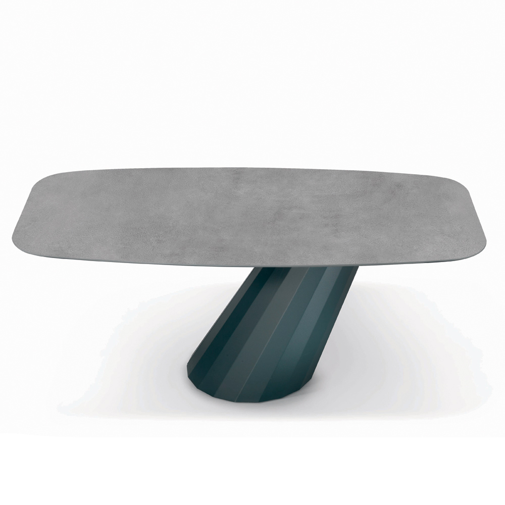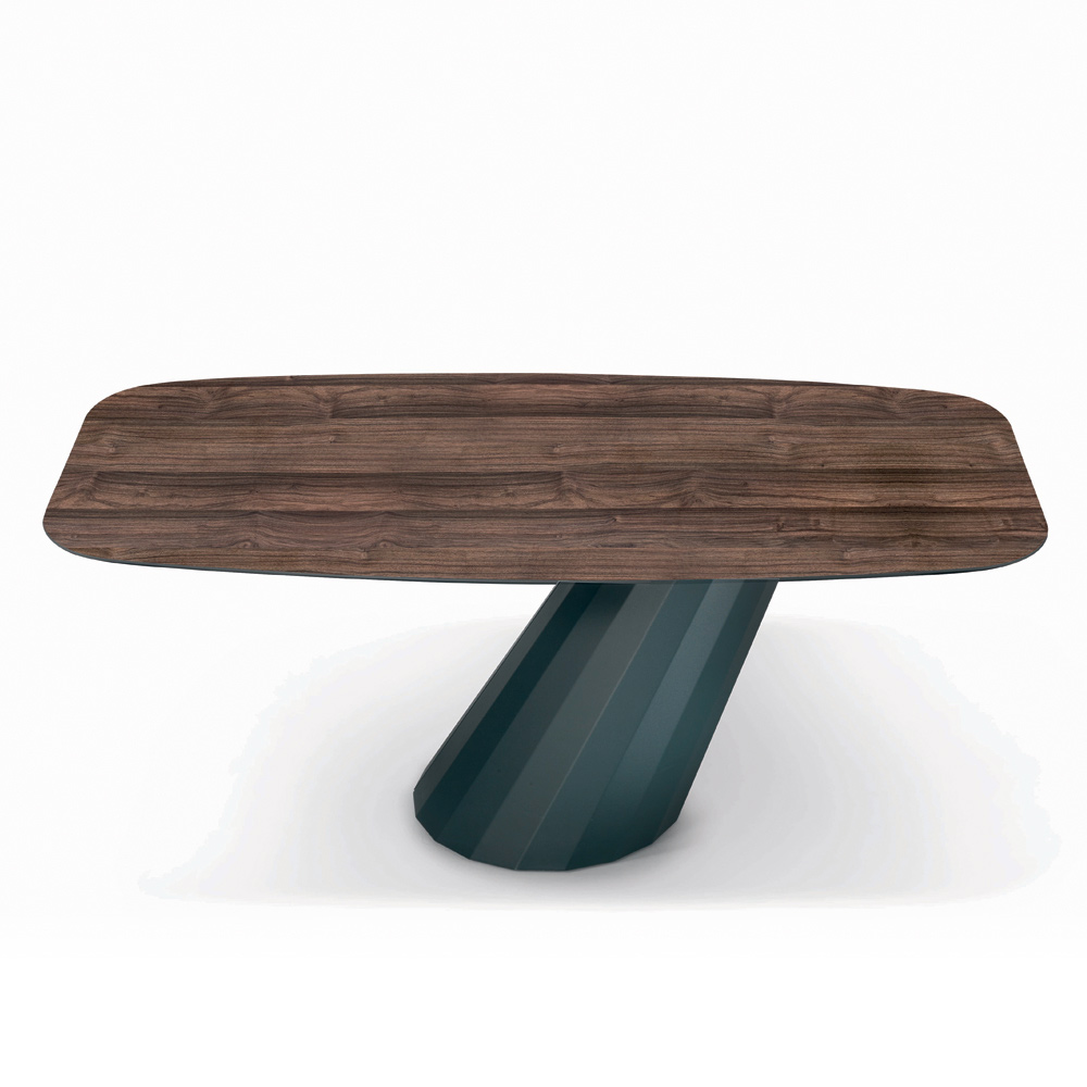 refinamiento de la forma de la base combinado con el acabado del tablero elegido crea una mesa única, de gran impacto visual, que decora con