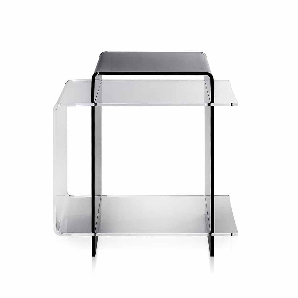 Mesa moderna con 3 estantes ahumados y transparentes Gosto made in Italy Mesa de centro versátil ahumada y transparente de 3 estantes / mesita de noche, inspirada en las geometrías y los bicolor de los años 70, fabricada en plexiglás de polímero virgen 100%, cortado con láser y doblado a altas temperaturas. El importante espesor hace que la estructura sea totalmente autosuficiente. El plexiglás es a prueba de golpes, indeformable, inalterable y aislante del calor. El brillo y el brillo se mantienen constantes y sin cambios a lo largo del tiempo. El plexiglás de PMMA de polímero virgen utilizado por es no tóxico, hipoalergénico, inodoro y antibacteriano. 100% reciclable Diseñado, diseñado y fabricado en Italia, con materiales italianos.