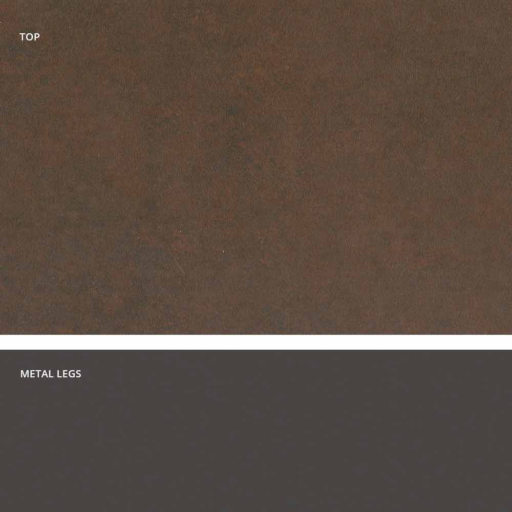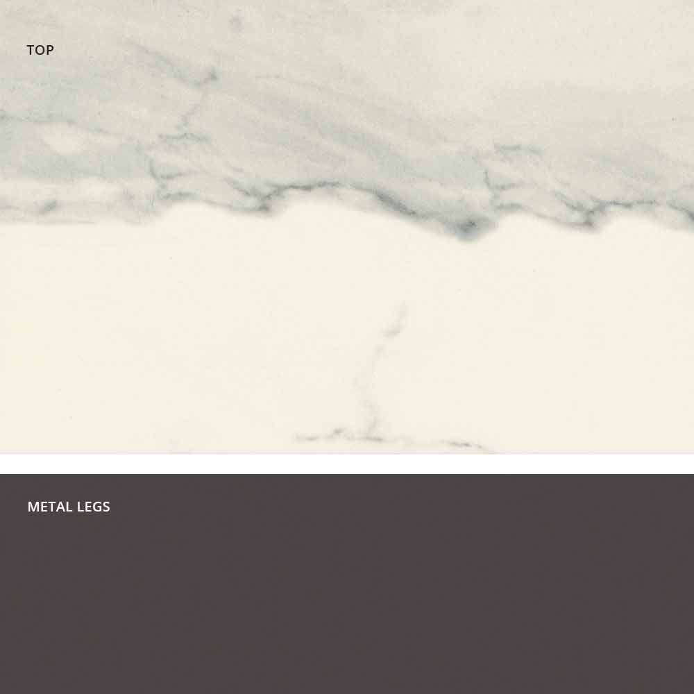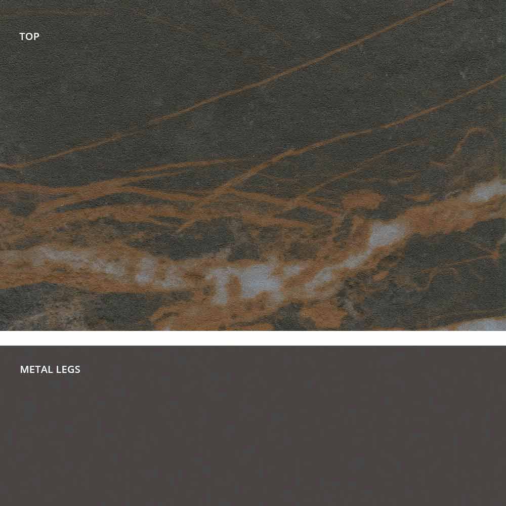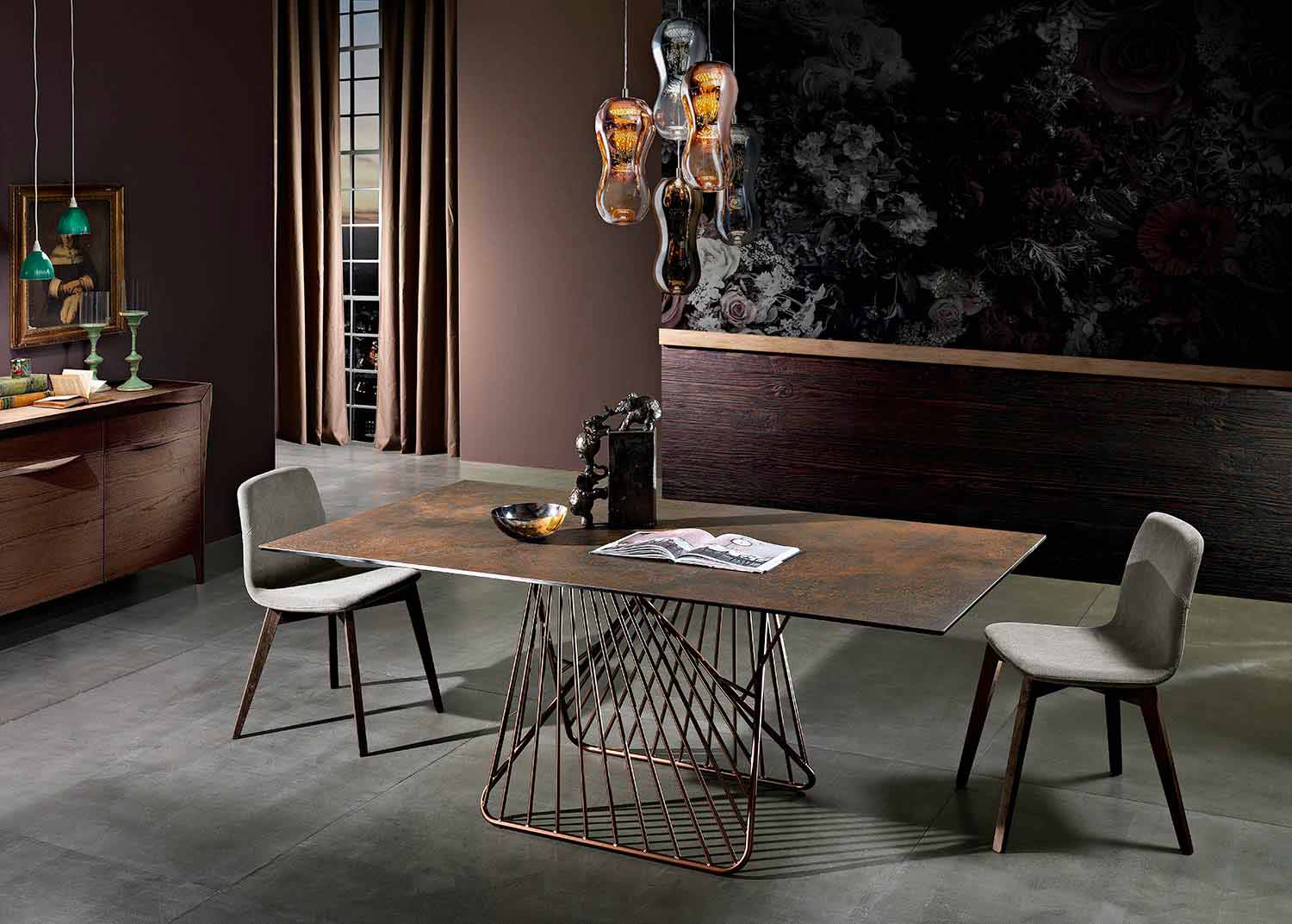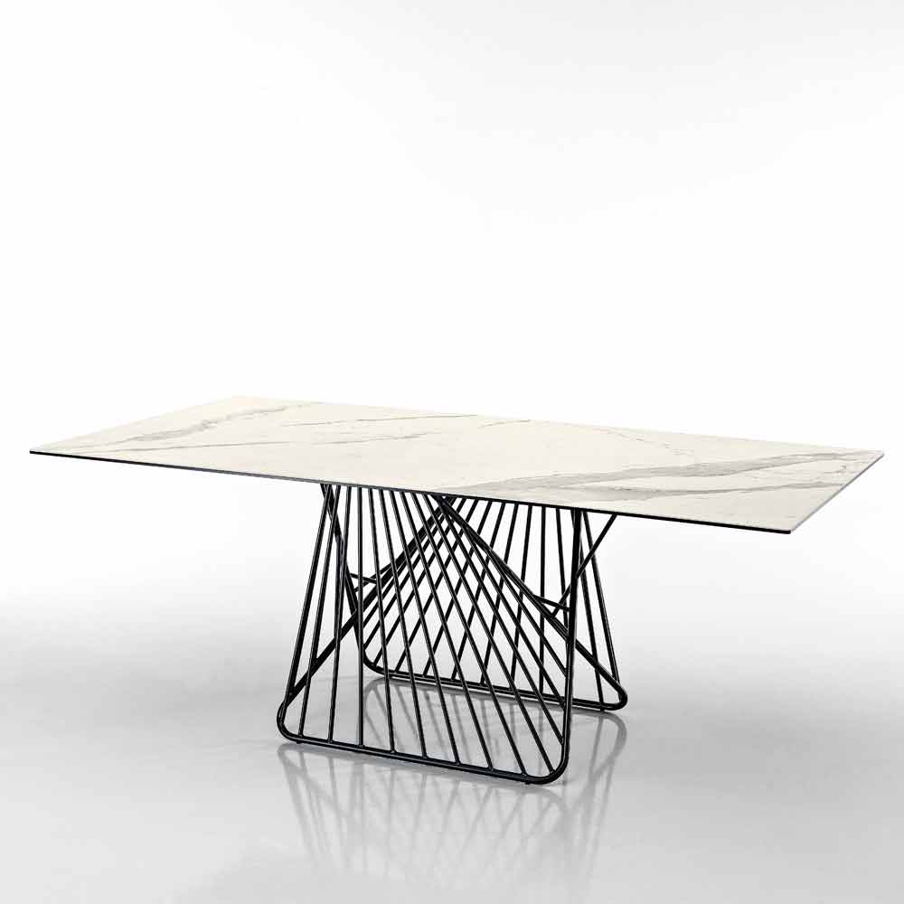 Mitia es una mesa fija realizada en Italia con una base de metal pintado y una superficie vitrocerámica .