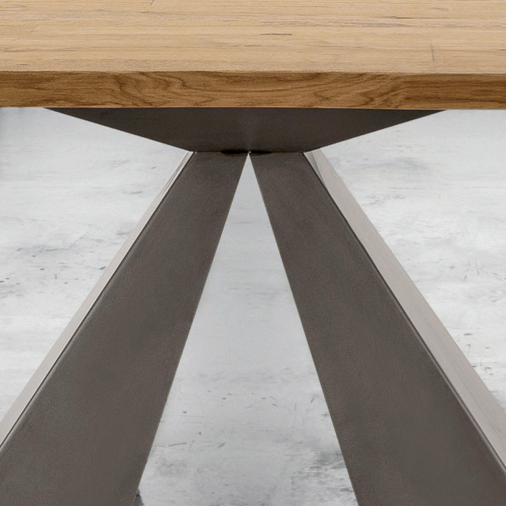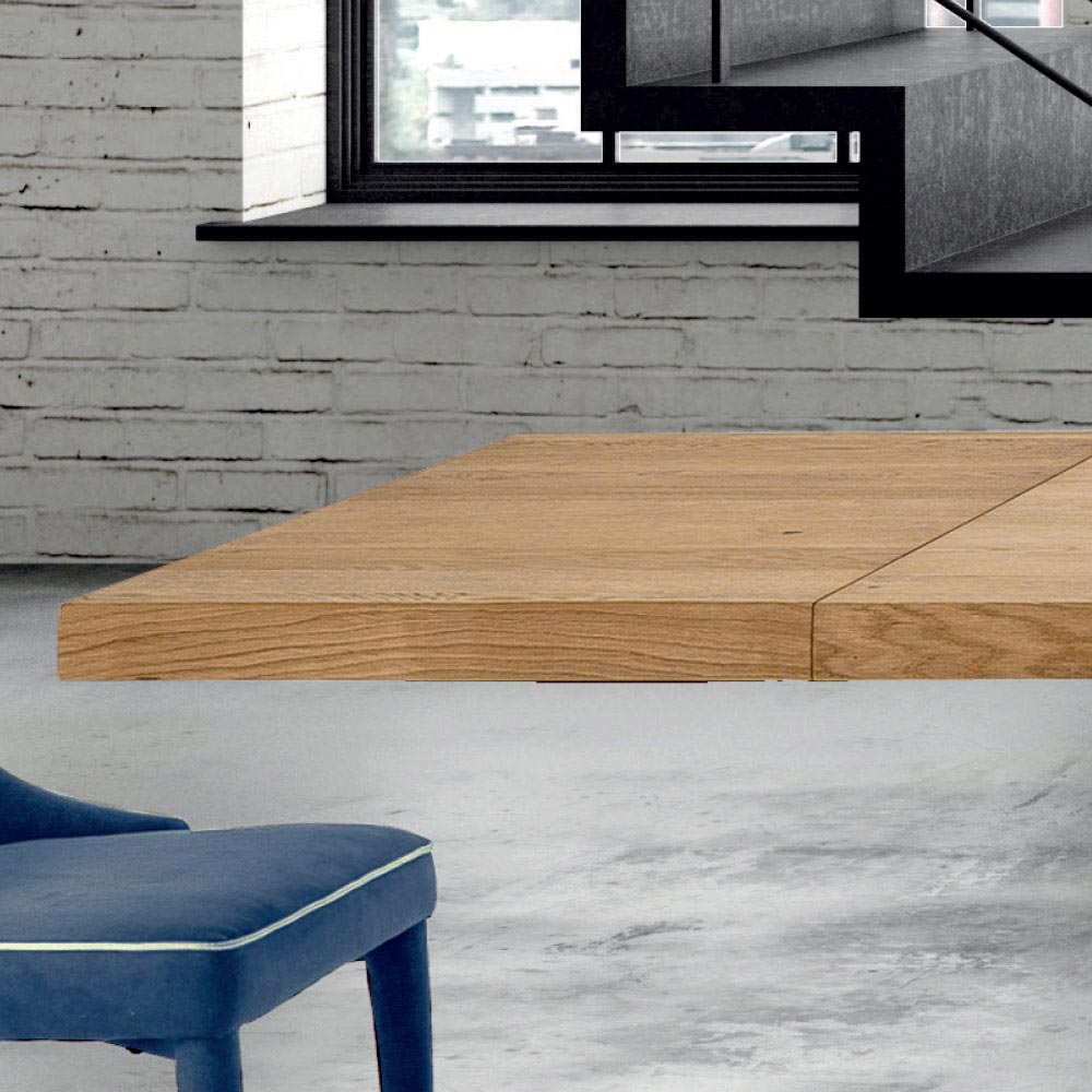 Mesa de cocina extensible en madera chapada y base de acero hecha a mano en Italia.